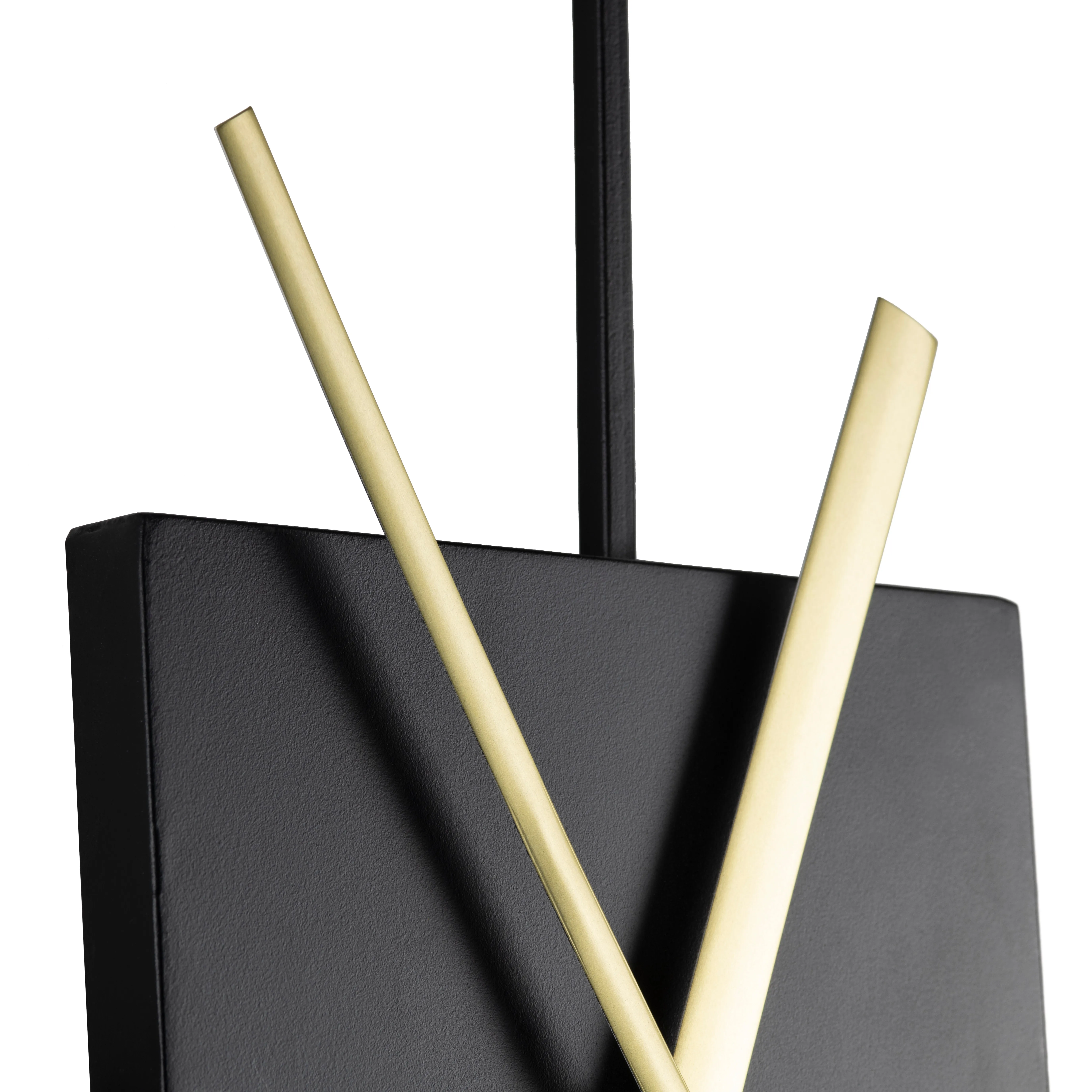 It's always the right time for a seriously modern wall clock with personality. This Crestview Collection Right Time Clock brings a deep dark black metal finish to a round clock face with all right angles on the inside. The abstract and asymmetrical interior lines hints at the curves of a spiral, leading into the gold finish clock hands.