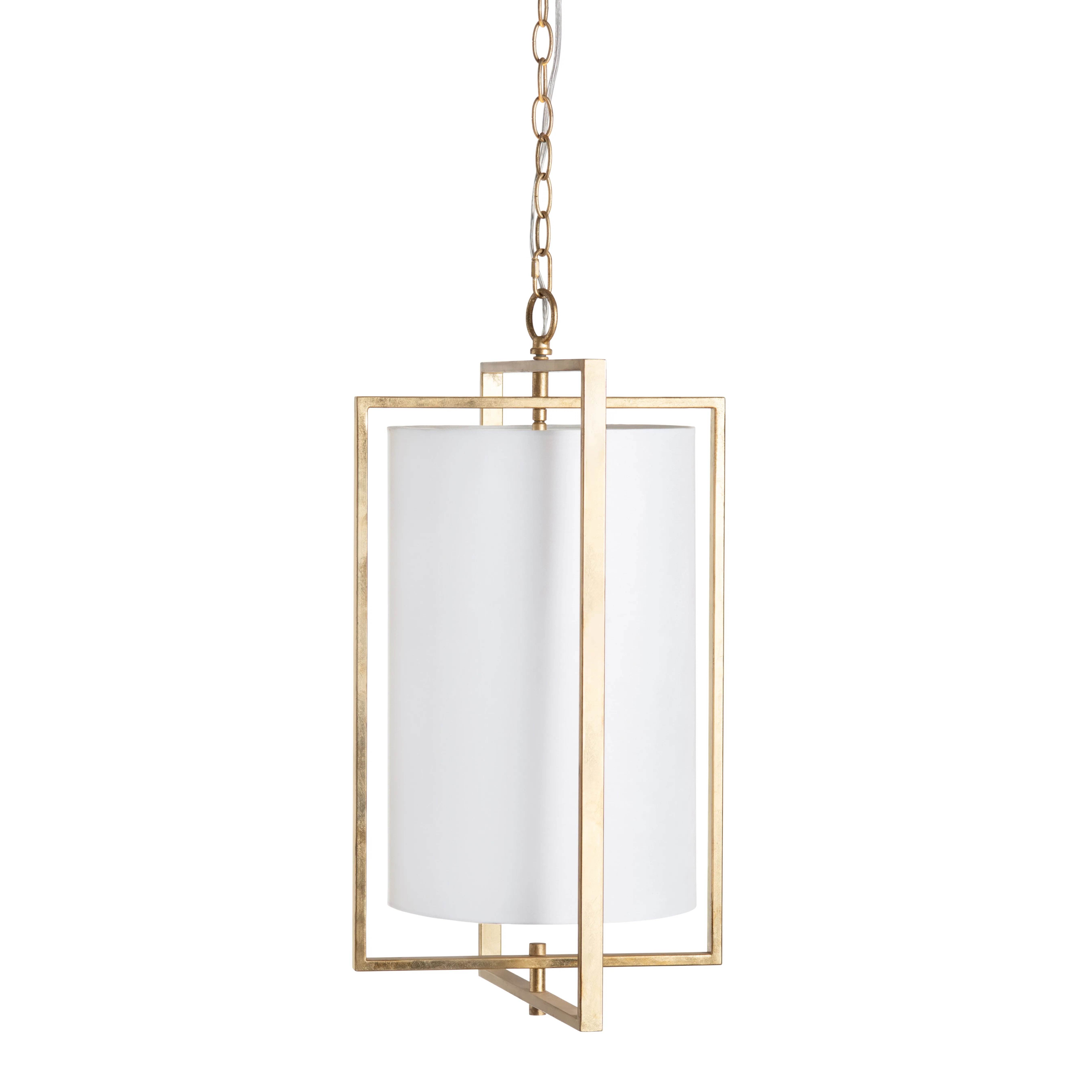 Crestview Collection's Fields 4 Light Pendant is the epitome of modern-industrial elegance. This open metal, cage-style design is crafted in a satin gold finish and includes one large white linen lamp shade. Four candelabra bulbs are required for illumination and mounting hardware is included. Allow this stunning pendant to be a statement piece in your home for years to come.