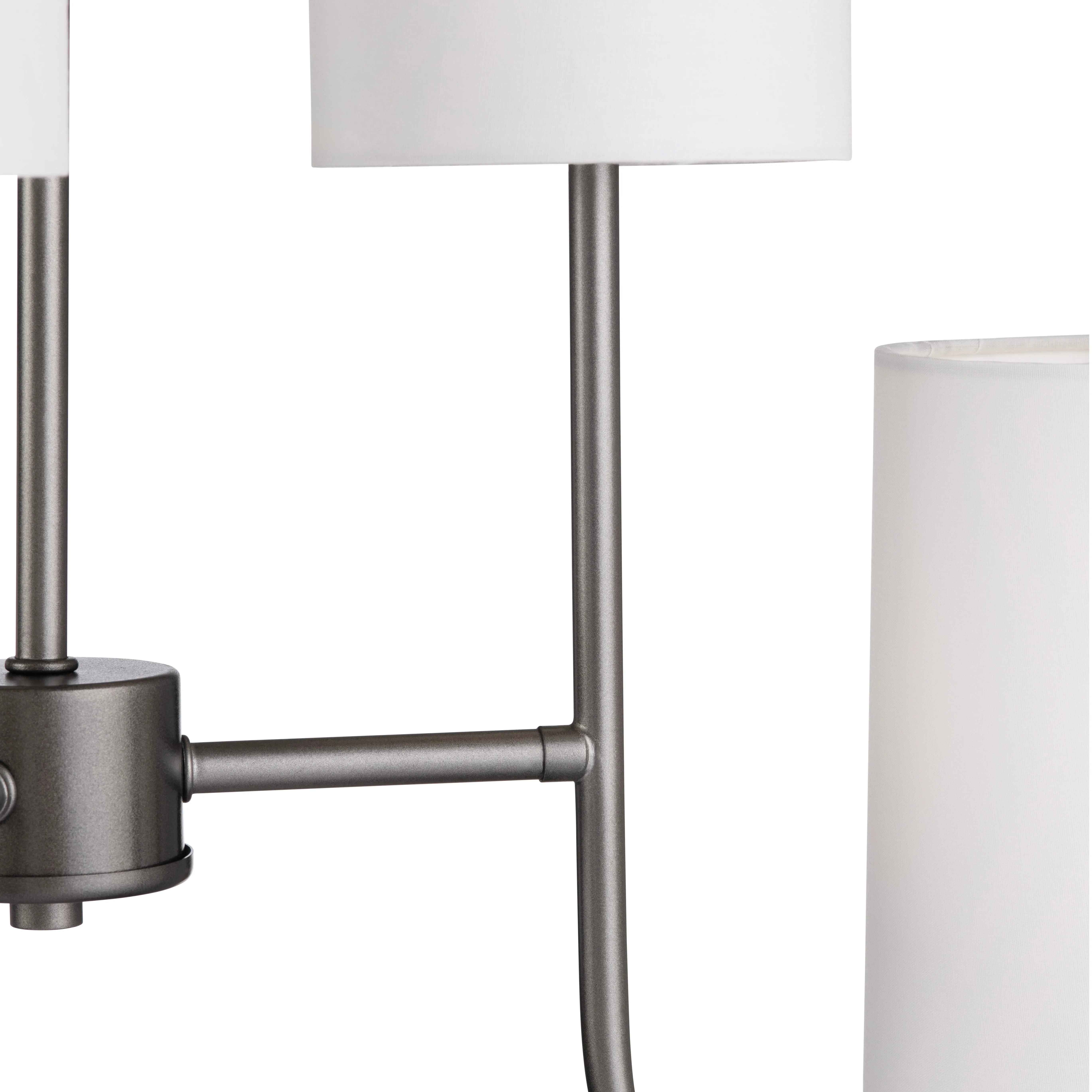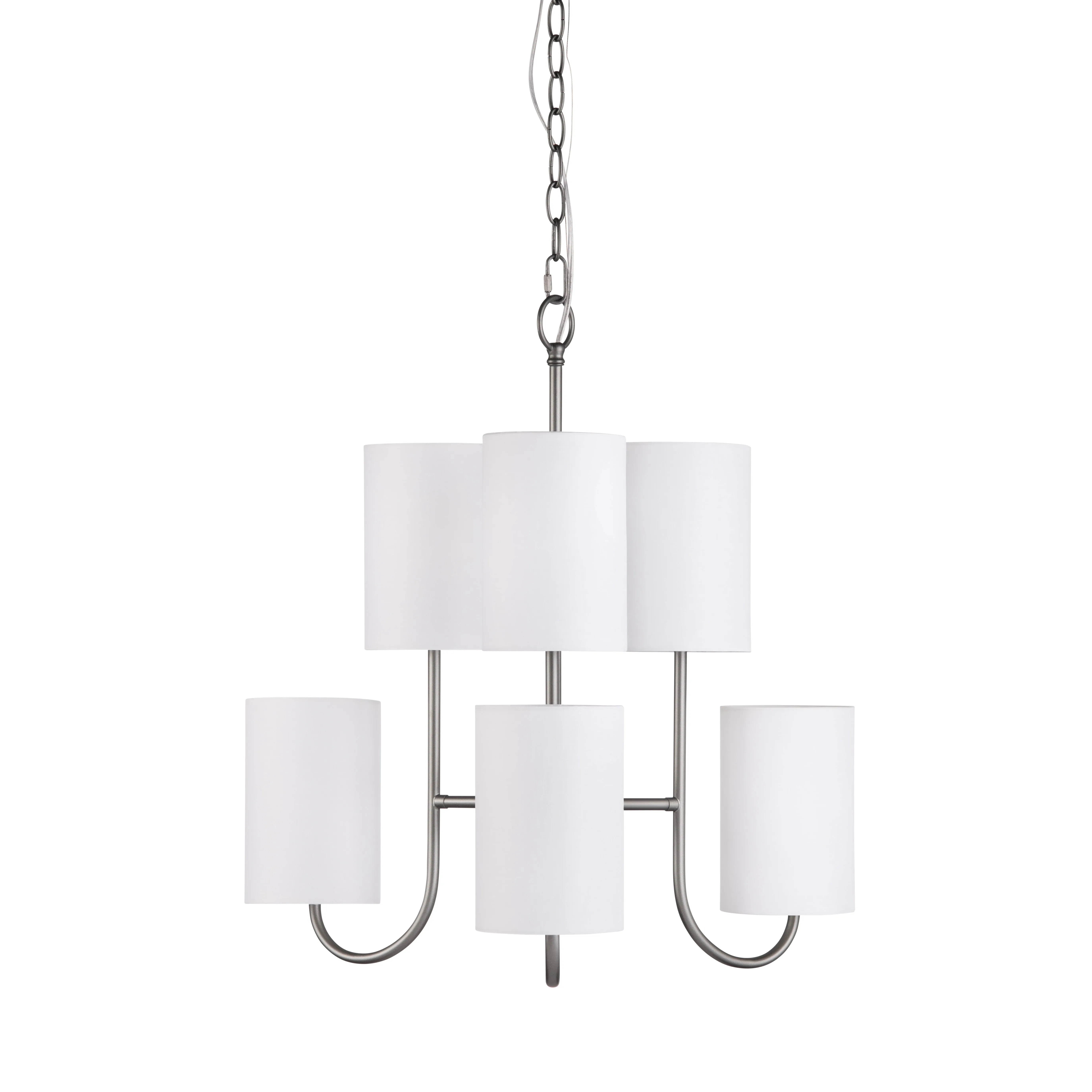 Crestview Collection's Fields 6 Light Chandelier is the epitome of modern-industrial elegance. This sleek metal design is crafted in a satin gunmetal finish and includes six white linen lamp shades. Candelabra bulbs are required for illumination and mounting hardware is included. Allow this stunning pendant to be a statement piece in your home for years to come.