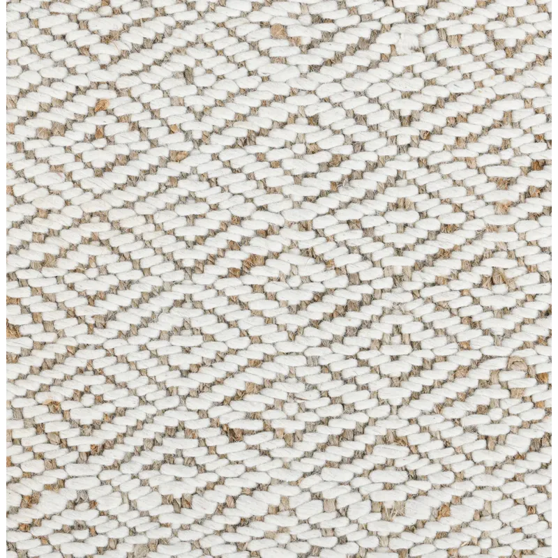 Brighten any space with this rug expertly handwoven with jute fibers and wool. With light, sandy color ways and a timeless diamond pattern, this rug a sophisticated yet airy effect. Add this rug to any setting for lasting durability and an artisanal look.