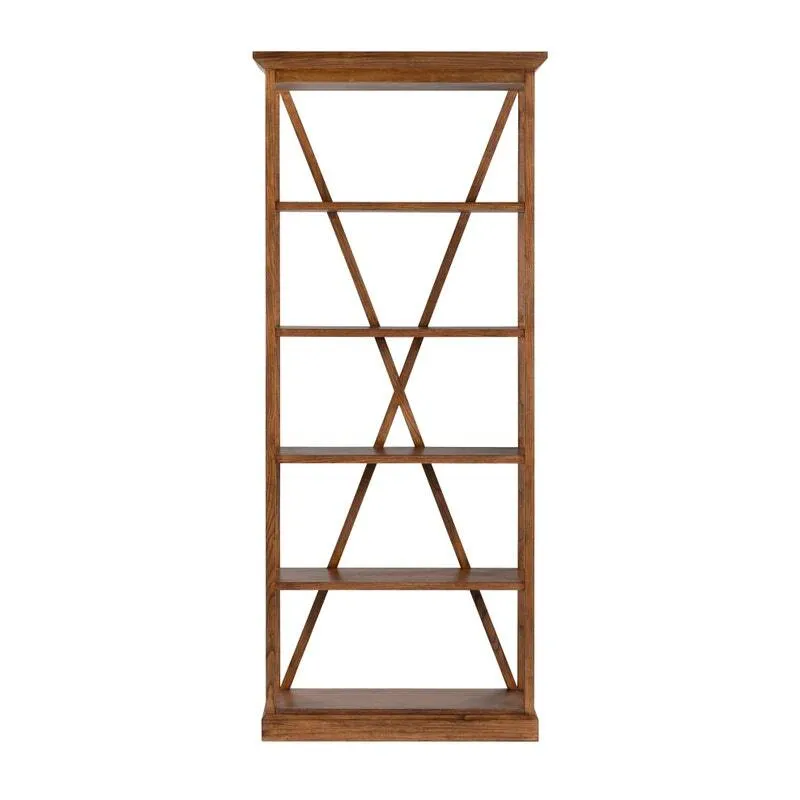 The Thomas Etagere by Crestview Collection is a beautifully crafted five-tier storage shelf designed to bring both functionality and timeless charm to your space. Finished in a medium brown veneer, this sophisticated storage solution boasts an x-style, crossbeam design that adds visual intrigue while also reinforcing the stability of the piece. Its open shelving concept allows for effortless access and display, making it as practical as it is stylish. Whether you're drawn to traditional, rustic, or transitional aesthetics, this distinctive etagere is sure to complement your décor with its timeless appeal for years to come.