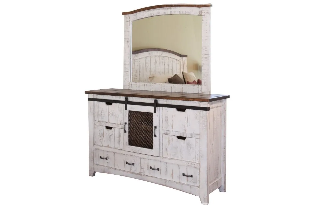 Pueblo White 3 PC Bedroom Set includes Queen Pladform Bed, Nightstand 6 Drawer Dresser & Mirror