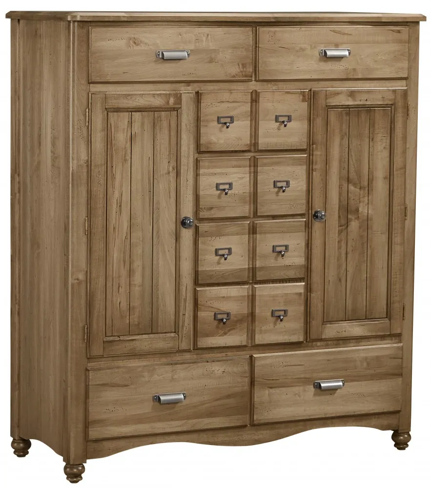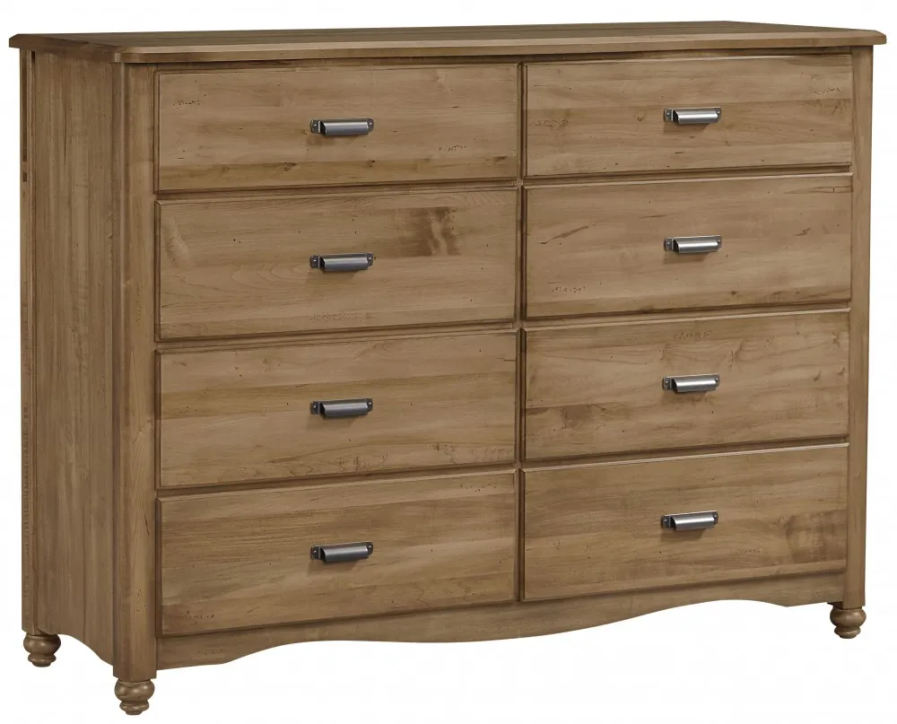 The American Maple Collection is crafted from Solid American Grown Maple. Inspired by elements of both farmhouse and cottage style that offers a relaxed traditional feel that will fit comfortably in any home. Features include mortise and tenon construction, maple wood on wood glides, snag-free smooth interior drawers, and a 8 step professional finish. American Maple utilizes three correlating types of case hardware that work seamlessly with one another. The combination of bar pulls, knobs and cardholder bin pulls gives the cases an updated electric style. 8 Drawer Bureau Landscape or Arched Mirror 5 Drawer Chest 8 Drawer Sweater Chest 2 Drawer Apothecary Night Stand 1 Drawer Night Table Slat Bed with available storage Shiplap Bed with available storage Beds avaliable twin, full, queen, and king. Avaliable in 4 Finishes, Natural Maple (Shown), Dusky White, Cottage Cherry, and Rustic Grey.