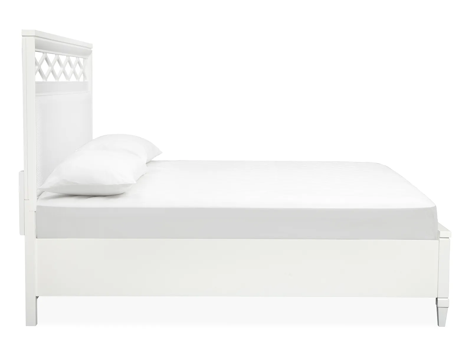 The Springhouse Collection is a refreshing take on cottage and coastal and and modern farmhouse design and featuring a clean Whisper White finish and refined Satin Nickel hardware. Its casegoods are thoughtfully crafted with decorative X molding details that add visual charm and while the small-scale nightstands are perfectly sized for second bedrooms or cozy spaces. The upholstered bed options provide a soft and inviting centerpiece and complementing the feminine touch of the delicate knobs. This collection offers a light and airy aesthetic that effortlessly enhances your bedroom and creating a serene and stylish retreat for your home.