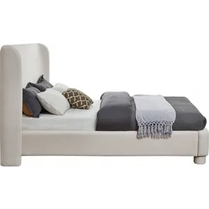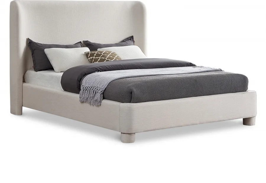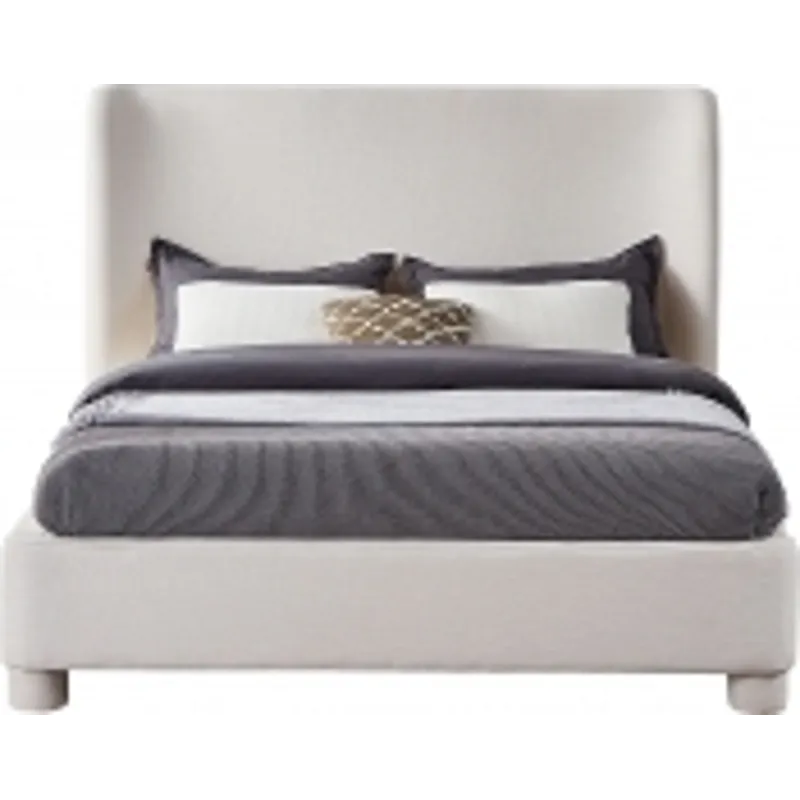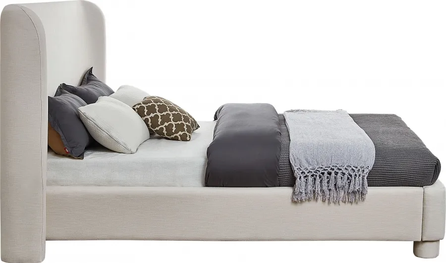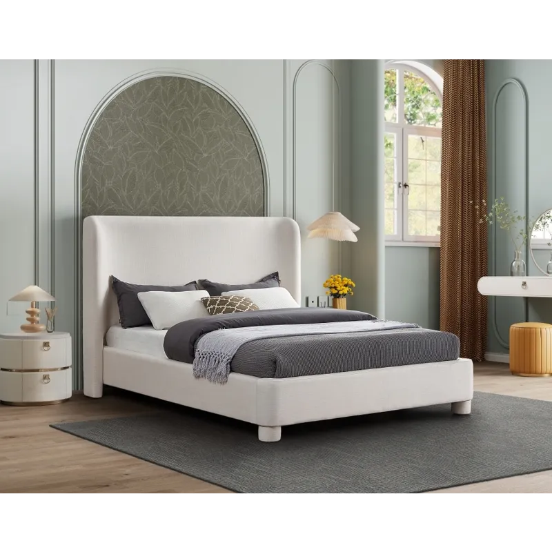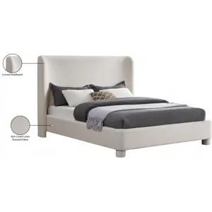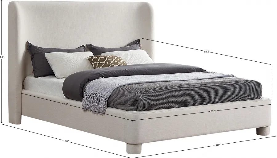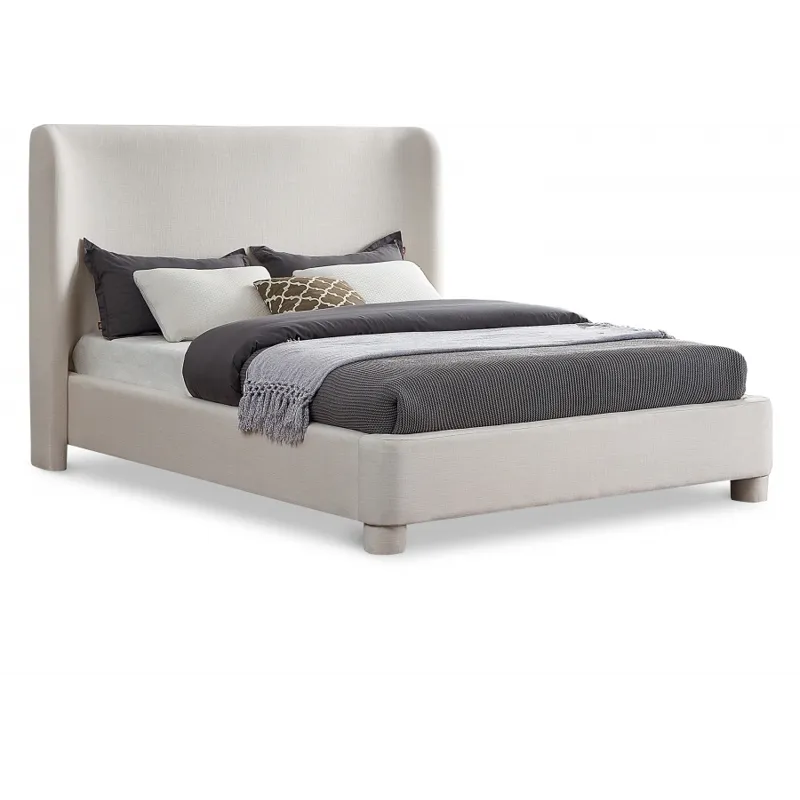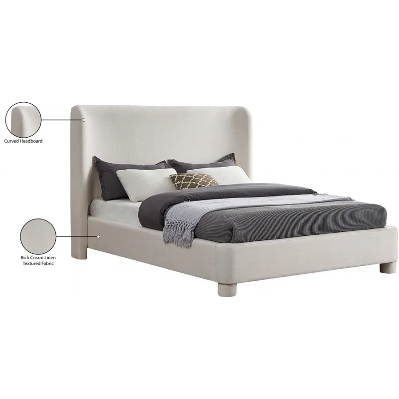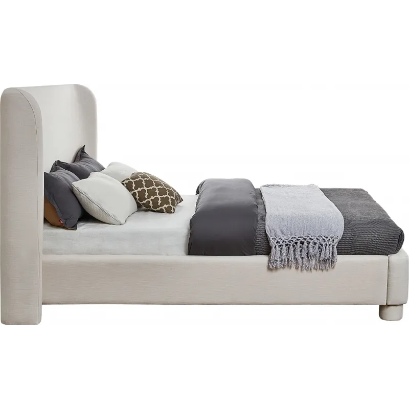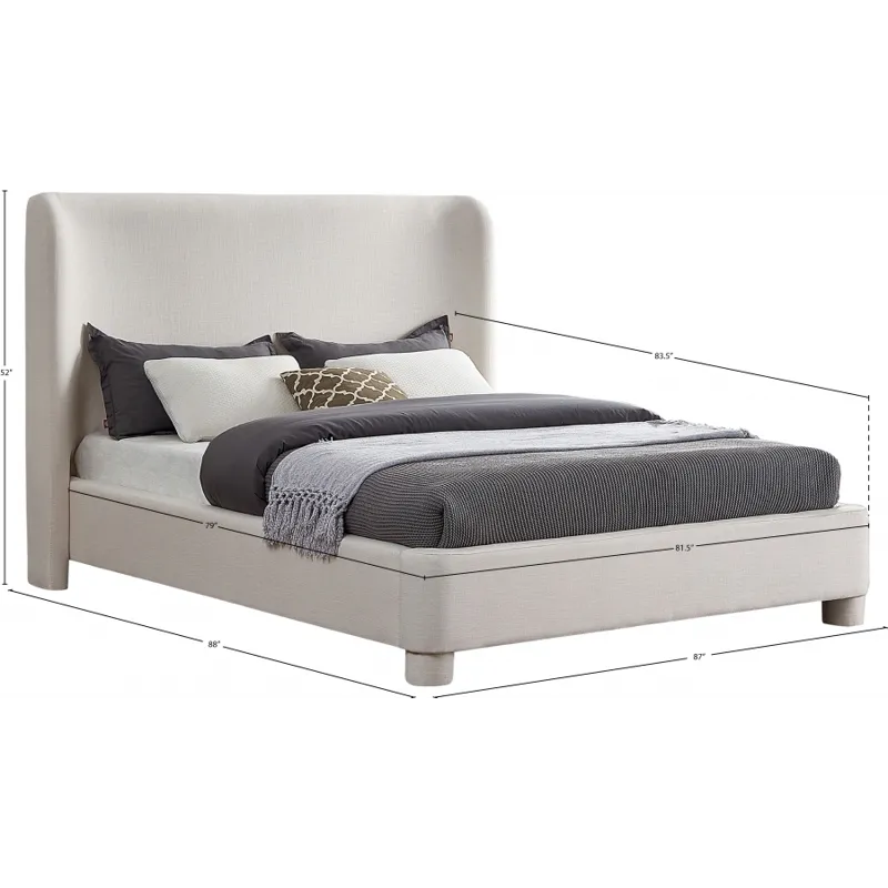 Breathe new life into your bedroom decor with the Penny Polyester Fabric King Bed. This stunning bed is upholstered in a luxurious cream linen textured fabric, adding a touch of elegance to your space. The curved headboard provides a comfortable and supportive backrest while adding a stylish focal point to your bedroom decor. Upgrade your sleeping experience with this fully upholstered bed and indulge in a peaceful night's sleep.