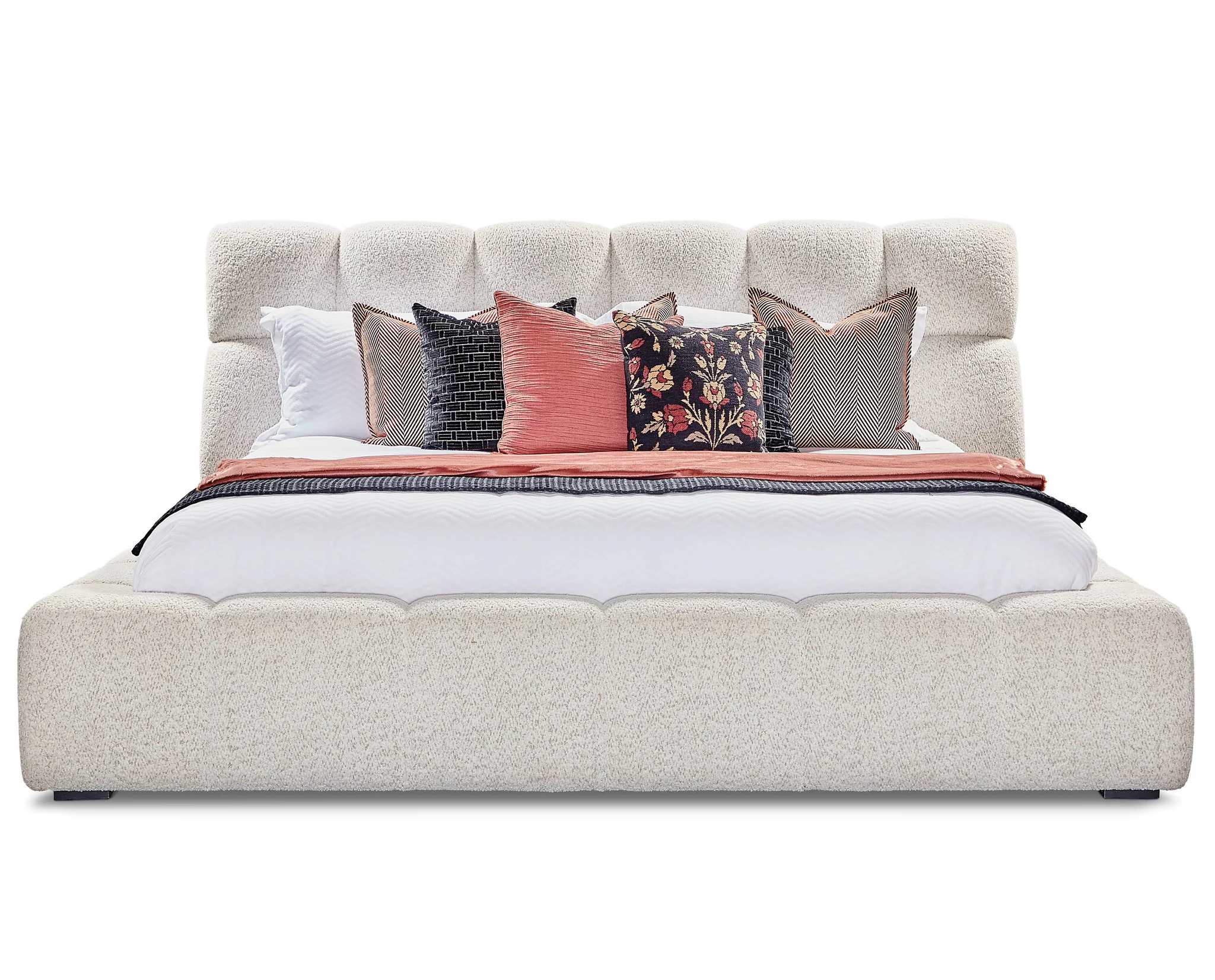 A beautifully unique, upholstered and tufted bed that ties the natural materials and calming aesthetic of the rest of the Escape bedroom collection together with ease.