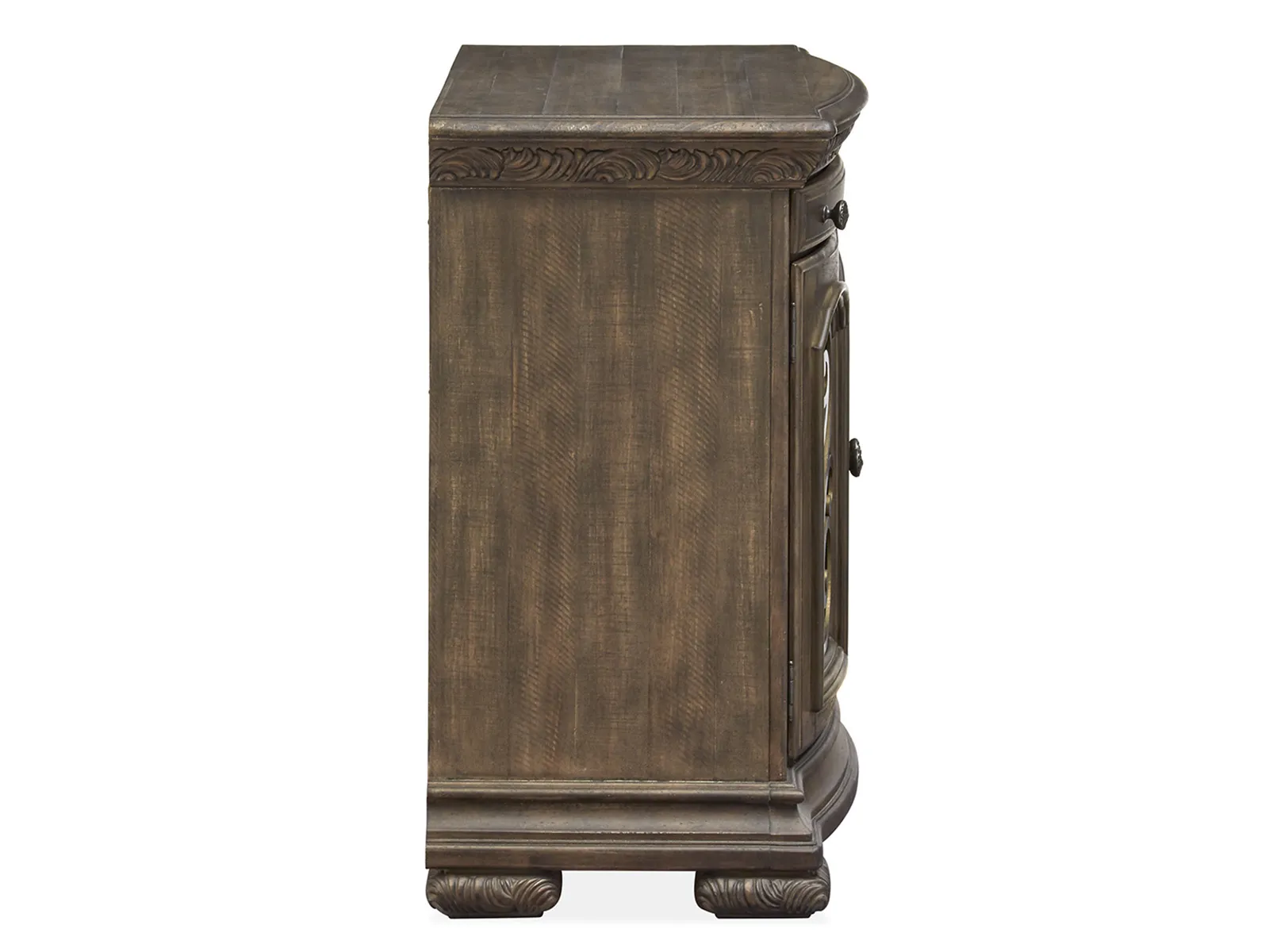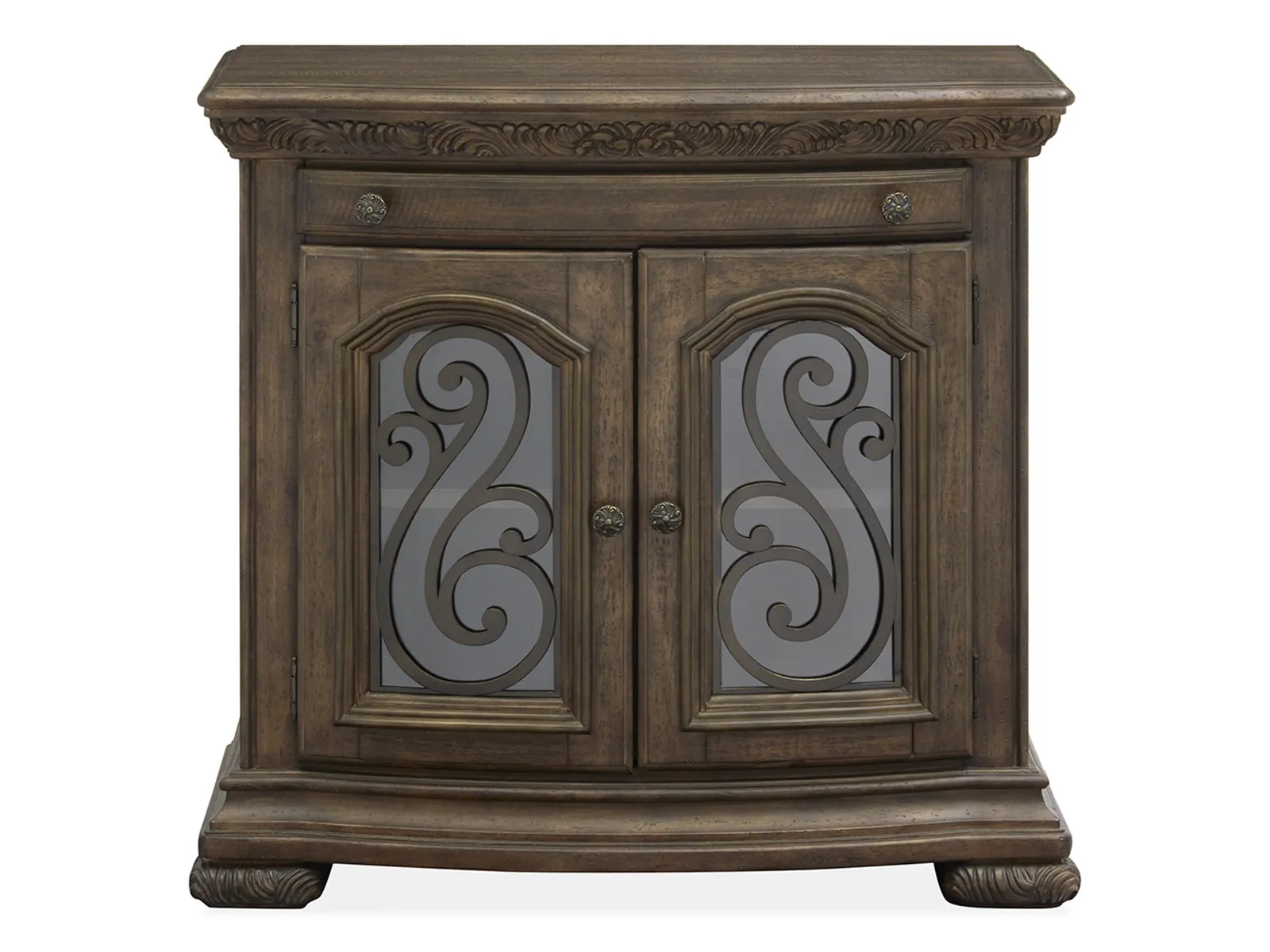 Traditional by nature and the handsome Durango bedroom collection imparts fresh allure to a classically inspired design aesthetic. Rooted in old world styling and these timeless silhouettes feature intricate carvings and fluted pilasters and ornate scrollwork insets. Antique Brass hardware gives the room a warm metallic element while providing the perfect complement to Durango’s gorgeous Willadeene Brown finish. If you’re an admirer of traditional styling and this statement bed and coordinating storage pieces are a must-have.