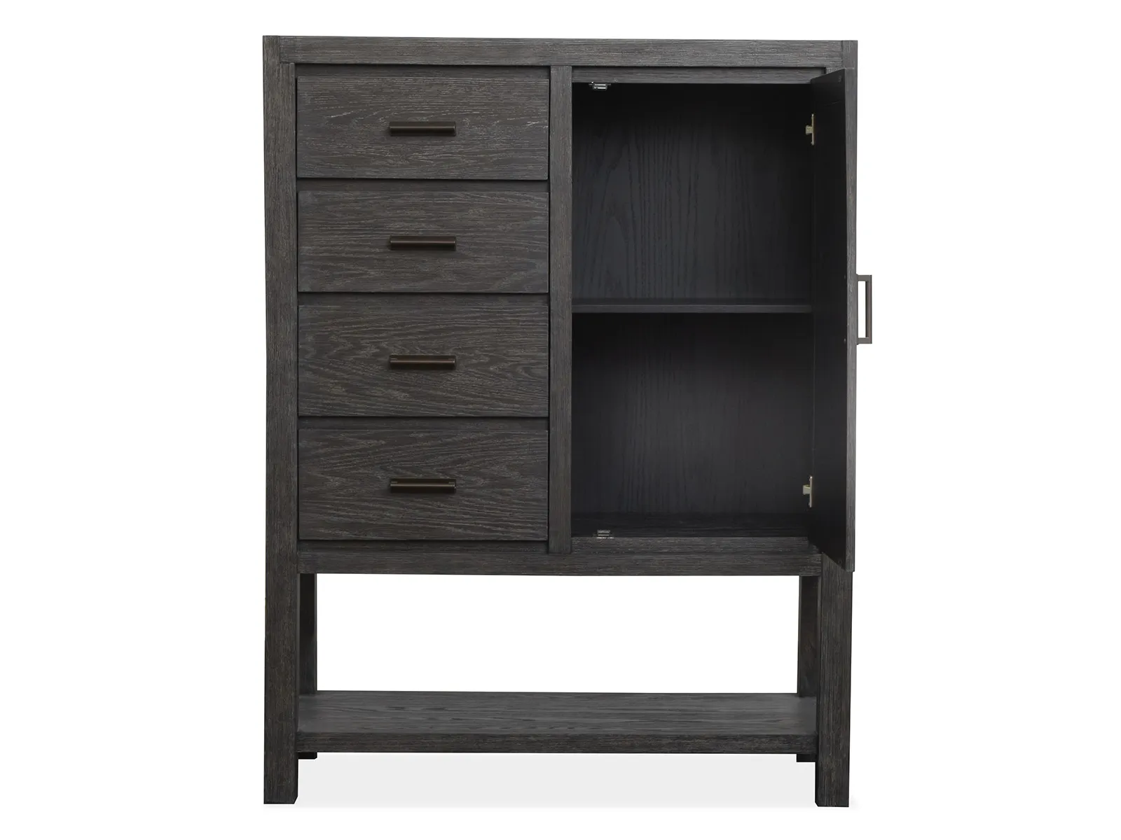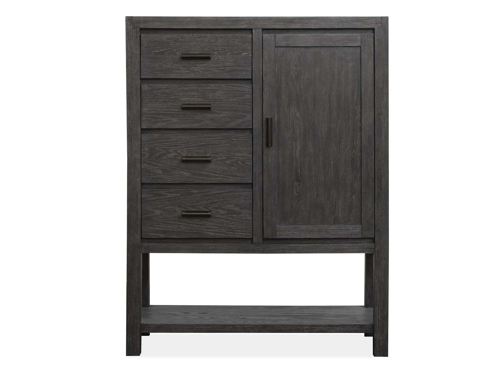 Discover the serene beauty of the Plum Creek and embodying sophistication in a style that transcends seasons. Meticulously crafted for both functionality and tranquil elegance and this collection enriches your living space with a calming ambiance. The Ravenwood Black finish and paired with Elite Dove fabric and burnished bronze hardware and creates a soothing sense of luxury. Its versatile design seamlessly complements various home aesthetics and turning any space into a serene retreat. Constructed from premium materials like random cathedral slip & flip white oak veneer and hardwood solids and the Plum Creek ensures enduring durability and timeless beauty and offering a haven of tranquility for years to come.