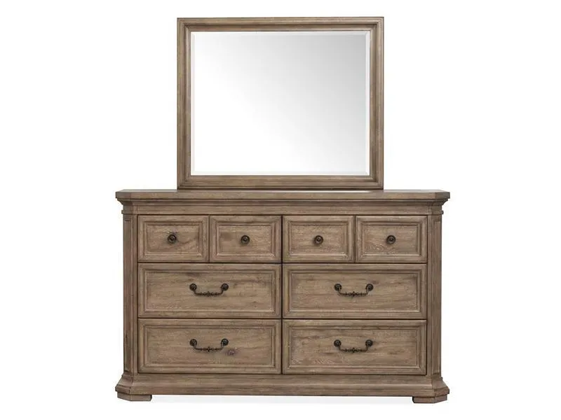 Experience the Adler Court Collection and where the relaxed traditional style comes to life with its exquisite Florentine Walnut finish and aged bronze hardware. The weathered caramel tones bring out the classic moldings and elegant canted posts on each case piece and while wire-brushed European Rustic oak veneers with subtle cerusing add a touch of timeless sophistication. The collection features a stunning upholstered panel bed with heathered linen fabric and beautifully complementing the natural hues of the oak. Perfect for creating a warm and inviting sanctuary and Adler Court seamlessly blends traditional charm with understated elegance and making it a timeless addition to any bedroom.