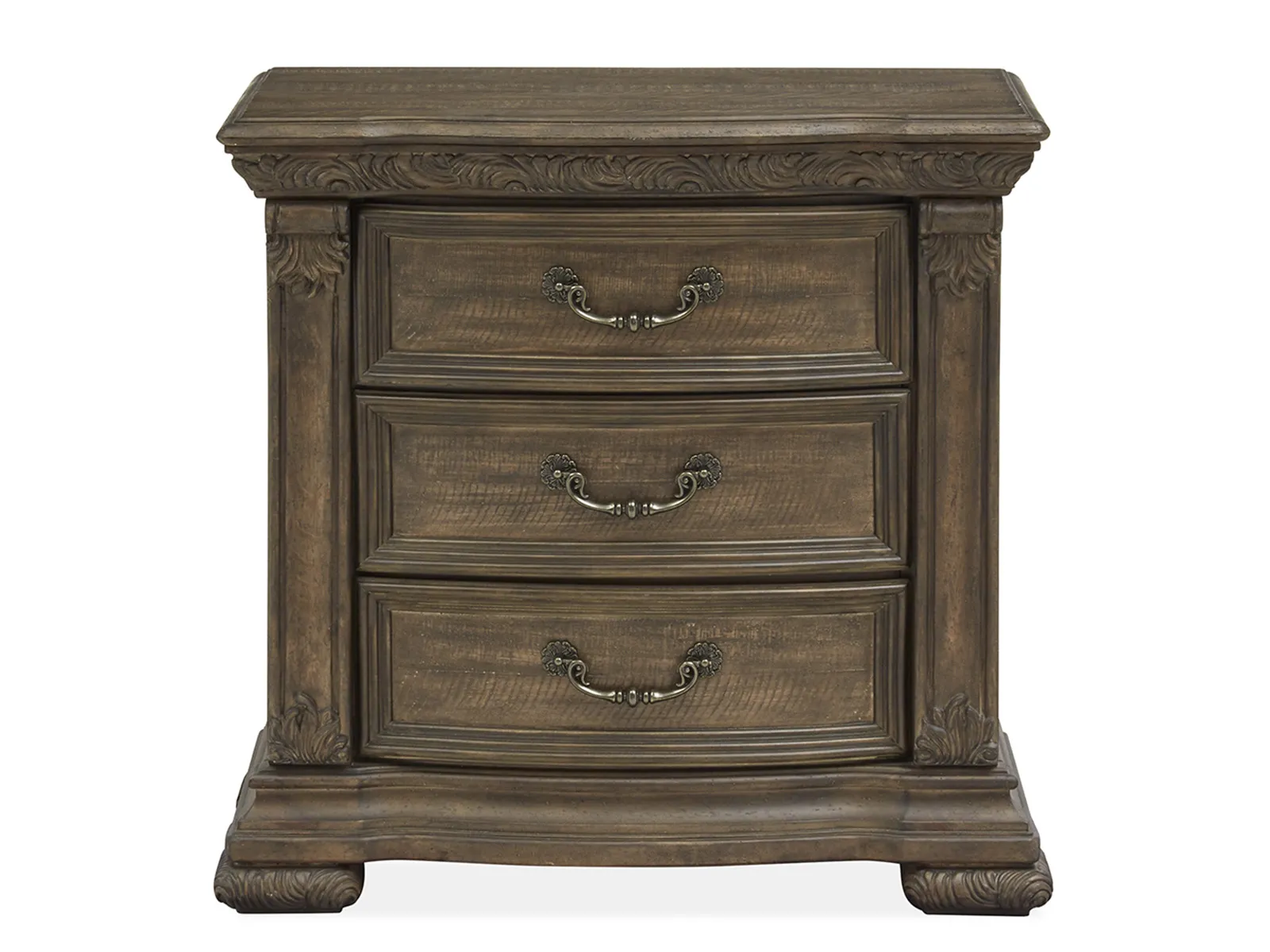 Traditional by nature and the handsome Durango bedroom collection imparts fresh allure to a classically inspired design aesthetic. Rooted in old world styling and these timeless silhouettes feature intricate carvings and fluted pilasters and ornate scrollwork insets. Antique Brass hardware gives the room a warm metallic element while providing the perfect complement to Durango’s gorgeous Willadeene Brown finish. If you’re an admirer of traditional styling and this statement bed and coordinating storage pieces are a must-have.