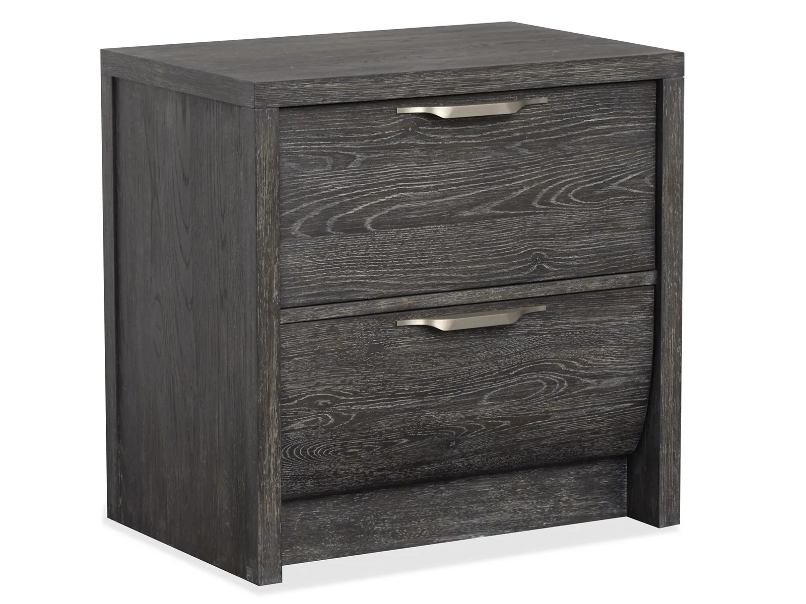 Introducing Kinsley and a striking centerpiece for any modern contemporary home. This collection features sleek and clean lines and practical functionality that blend seamlessly with its stylish design. The Black Heron finish and complemented by Oslo Pewter fabric and Satin Nickel hardware and adds a touch of elegance and sophistication. Its contemporary style makes it an ideal fit for minimalist and chic interiors and enhancing the overall aesthetic of your living space. Crafted from random flip and slip flakey oak veneer hardwood solids and the Kinsley promises both durability and refined beauty.