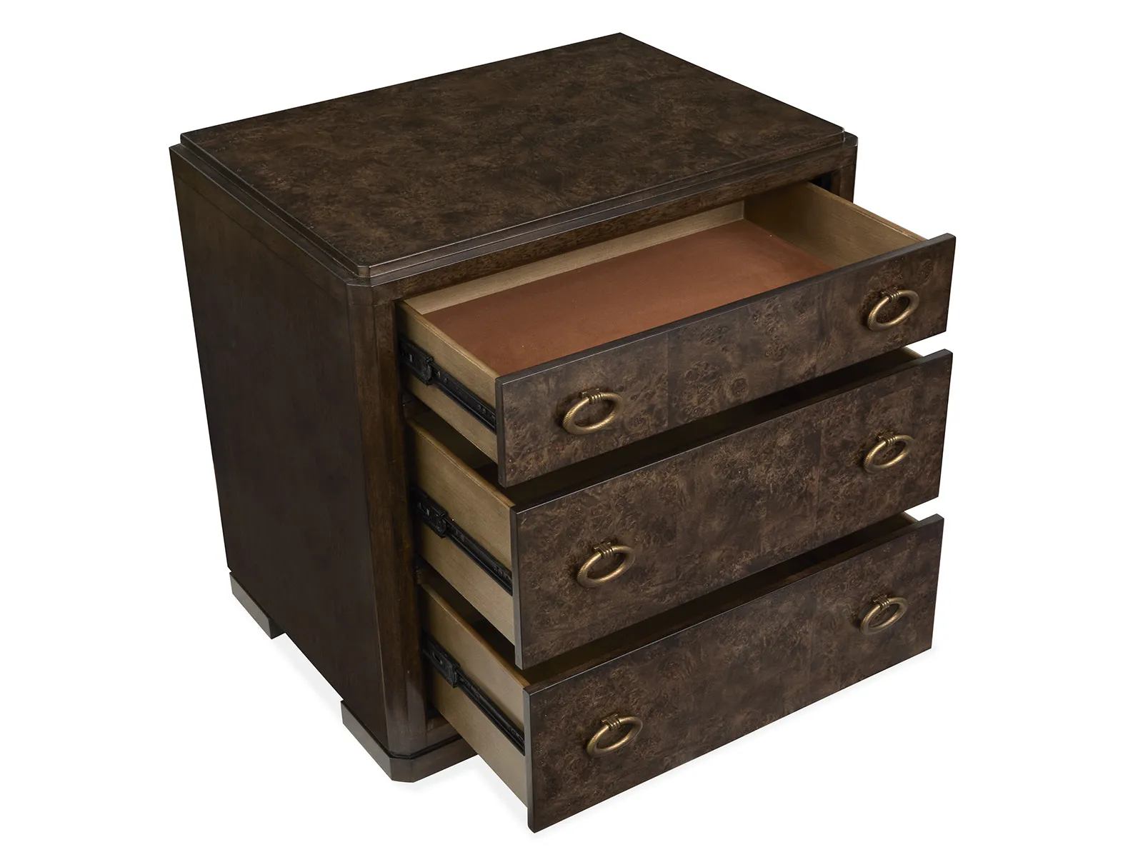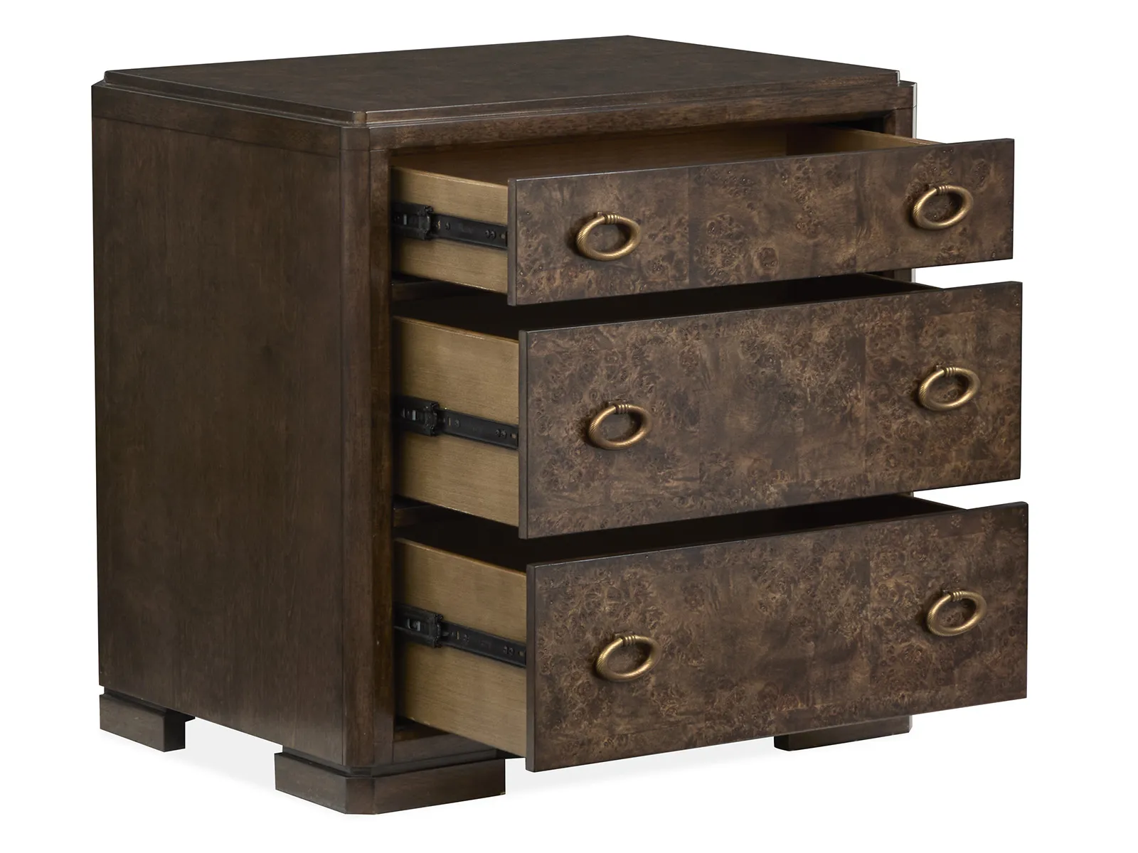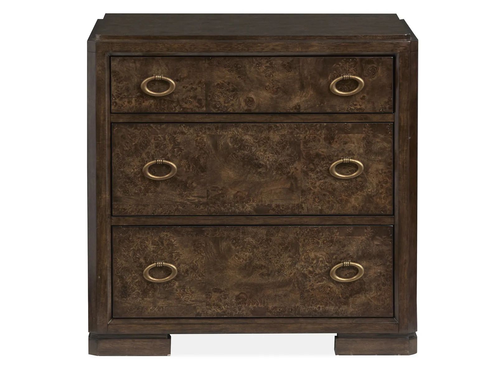 Unforgettable by design and the handsome Rowan bedroom collection has no equal. From its exquisite Mappa Burl veneers to its unique mix of materials—Rowan’s remarkable character shines through in every detail. Its stylish array of statement beds and storage pieces capture the imagination and can be layered together to create the ultimate bedroom escape. A deep and rich Espresso finish accentuates the beauty of the collection’s Mappa Burl and Birch veneers while Antique Brass hardware lends another level of luxury. Ideal for purveyors of fine design and the Rowan collection displays a uniquely expressive visual appeal that’s hard to take your eyes off.