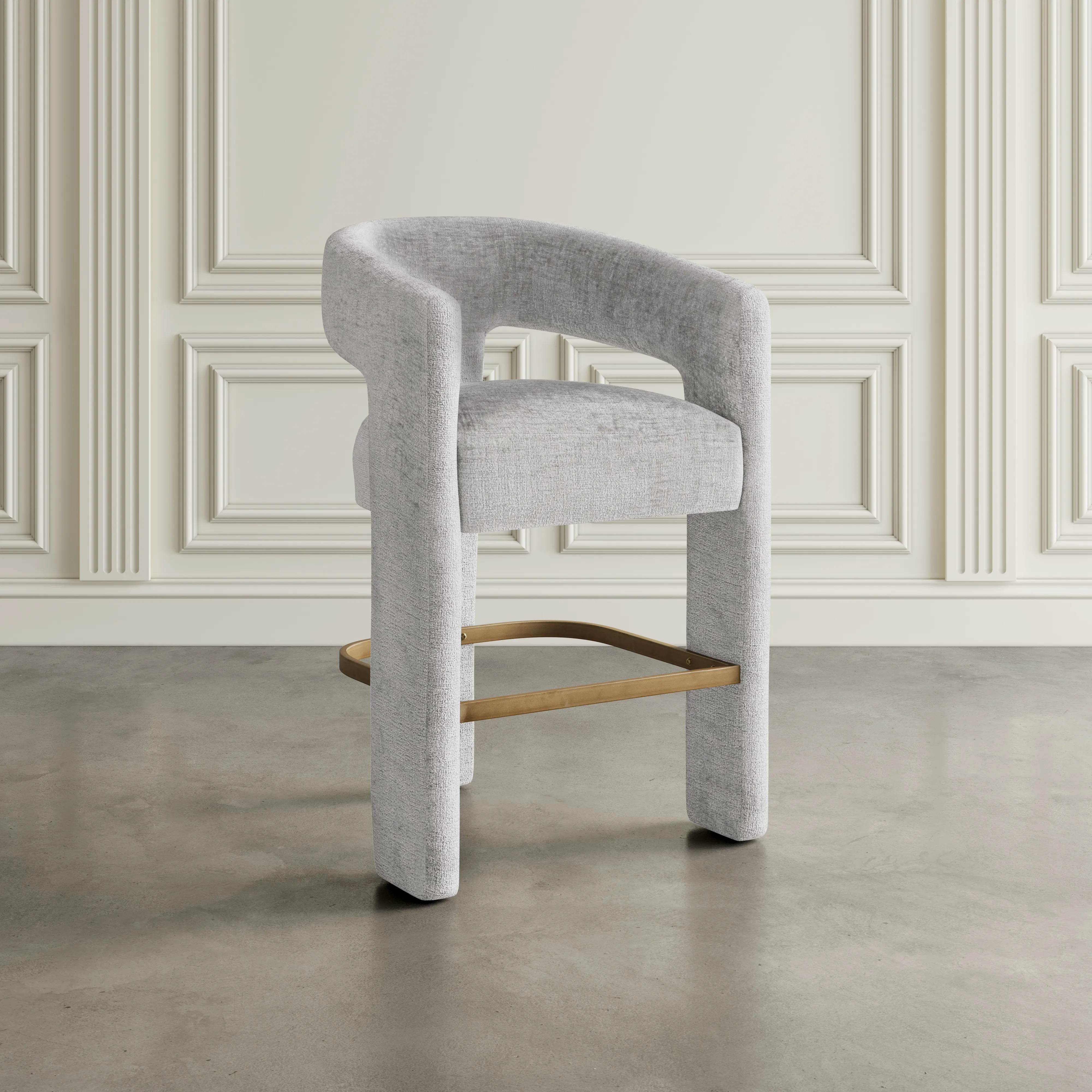 Experience the epitome of modern elegance with the Gwen Upholstered Counter Stool. Crafted with luxurious Jacquard fabric, this stunning counter stool boasts a sculpted style that adds a touch of sophistication to any space. The rounded back and integrated arms offer both comfort and versatility, making it a perfect addition to your kitchen counter or bar area. The deep-seated frame, adorned with a contemporary textured fabric, provides visual depth and contrast. Plus, the built-in metal footrest enhances the overall design and ensures a comfortable seating experience. No assembly is required, allowing you to enjoy the chic upgrade instantly. Elevate your home with the Gwen Upholstered Counter Stool where style meets functionality seamlessly.