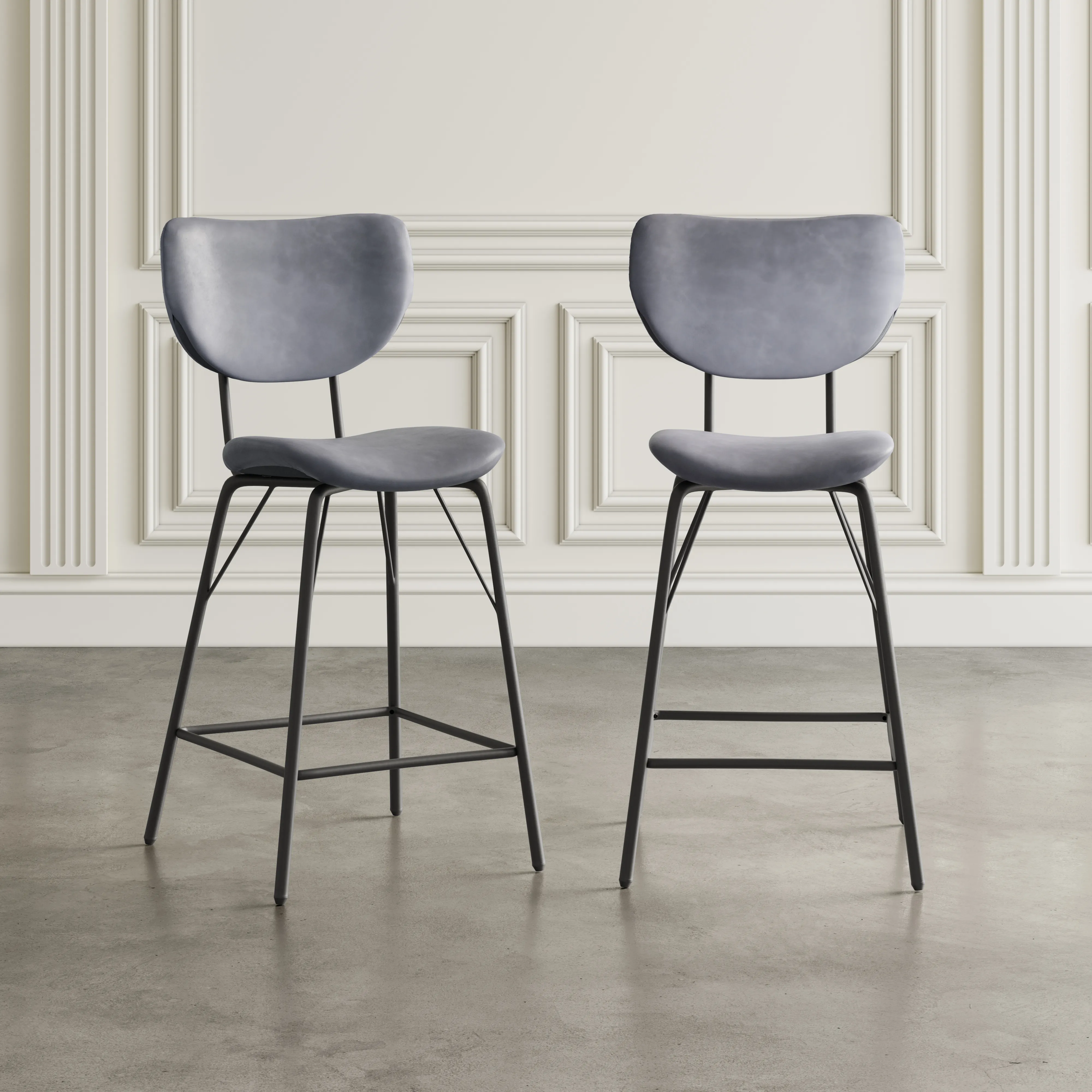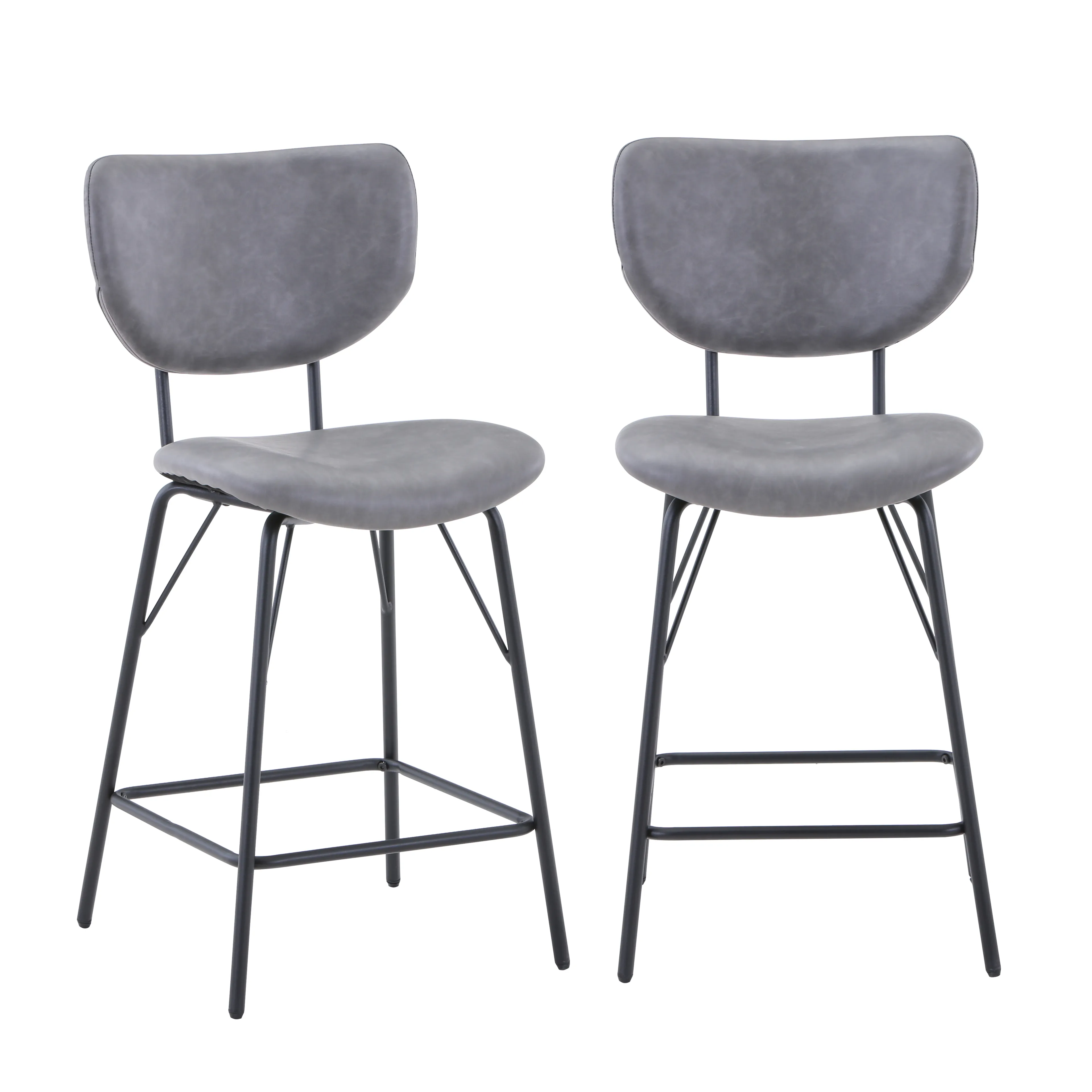 Upgrade the comfort and style of your home with this set of two Owen Counter Height Barstools. Featuring a modern split-back design and plush faux leather upholstery that creates a comfortable seating experience. The metal frame has a built-in footrest and assembly is fast and easy using the included hardware pack. Stylish and functional, the Owen barstool is perfect for additional seating next to your kitchen counter or in your living room behind a sofa. Elevate your living space with this set of two Owen Counter Height Barstools.