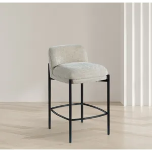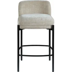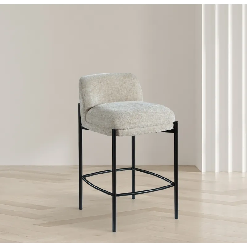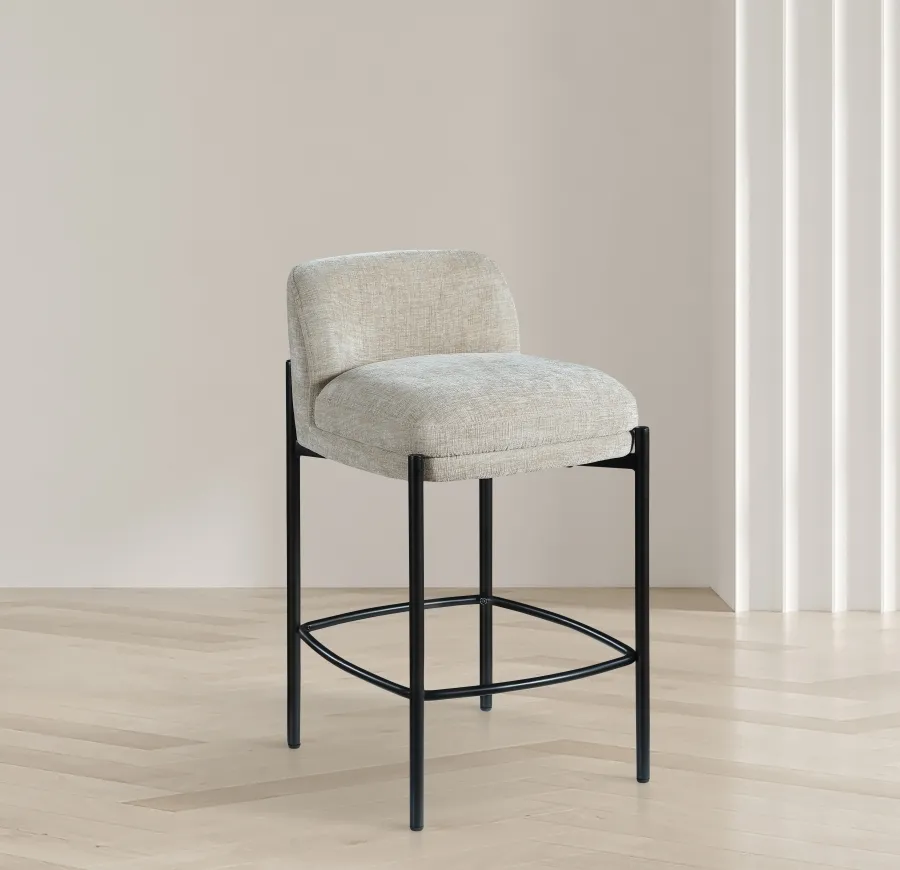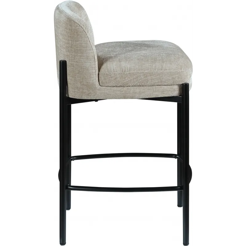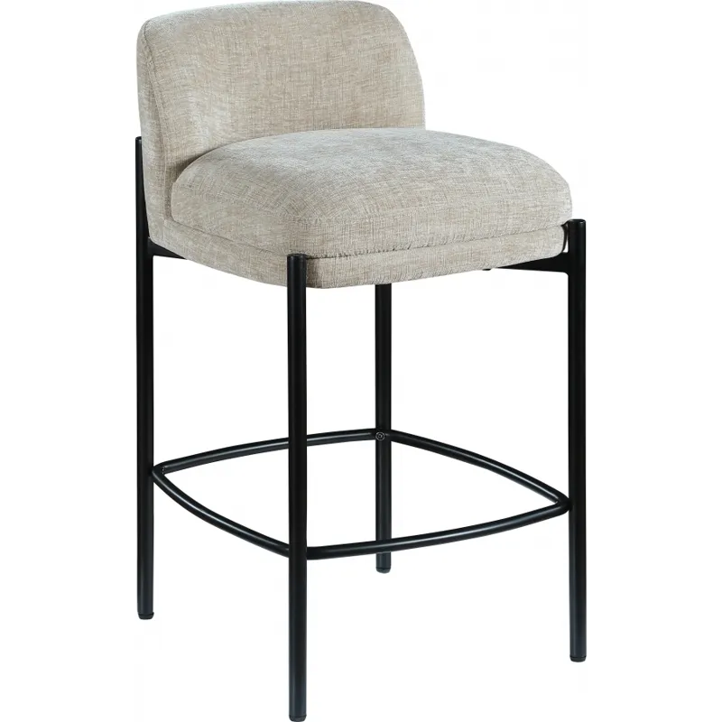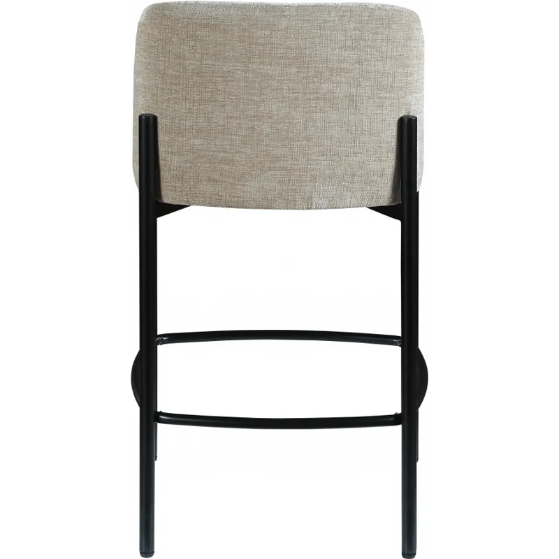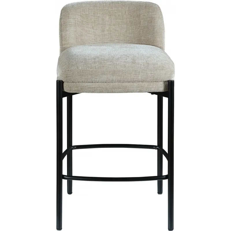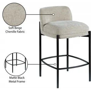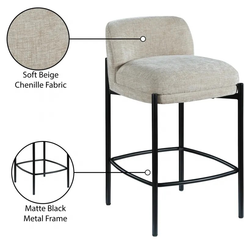 Make your kitchen counter or home bar your family's favorite spot to be with these beige Burton chenille fabric bar/counter stools. Each stool boasts soft beige chenille fabric and a sturdy matte black metal frame, ensuring both comfort and durability. A footrail across the bottom adds to the comfort factor of these handsome stools. Sold in sets of two per carton, these counter stools offer stylish and functional seating while infusing your space with a chic and modern touch.