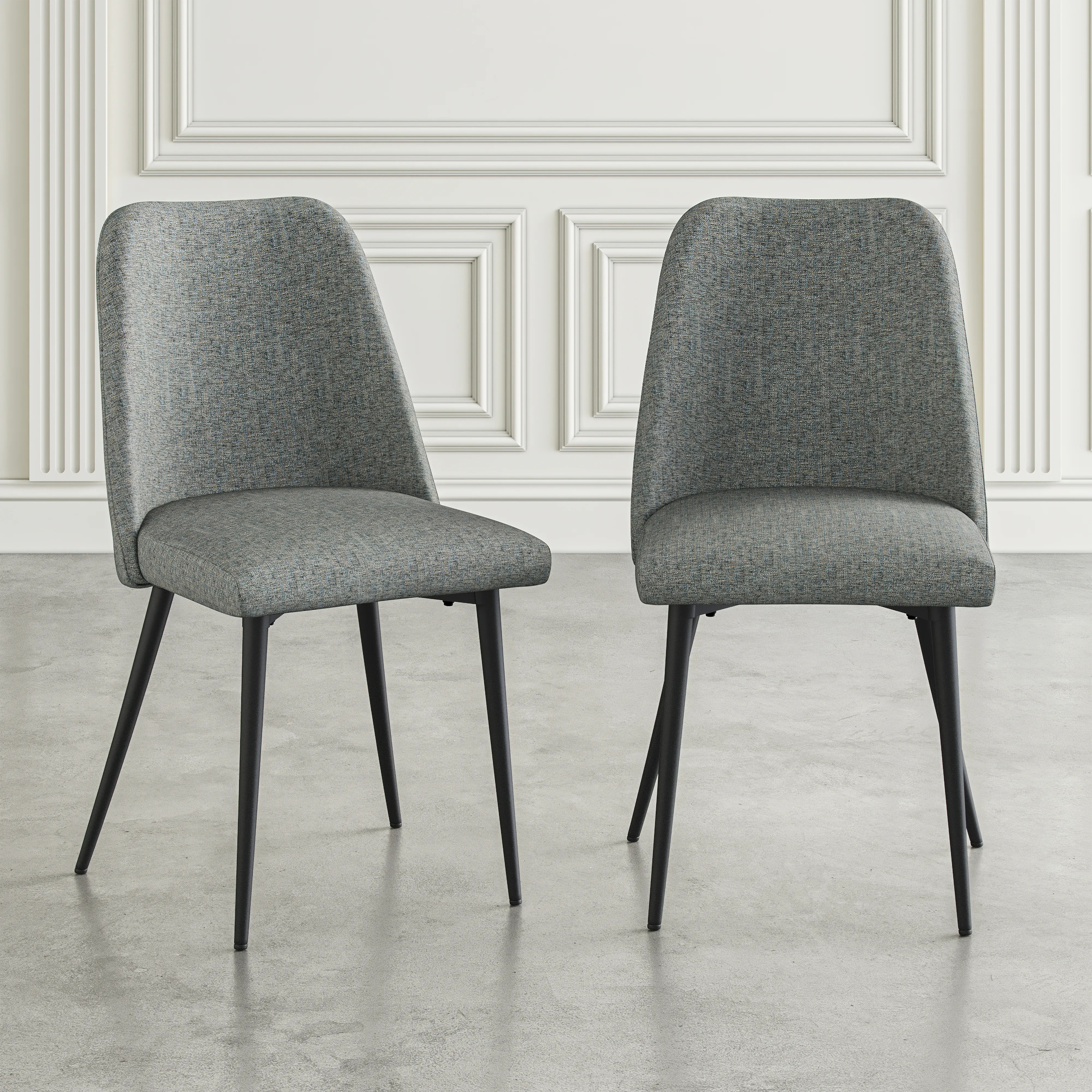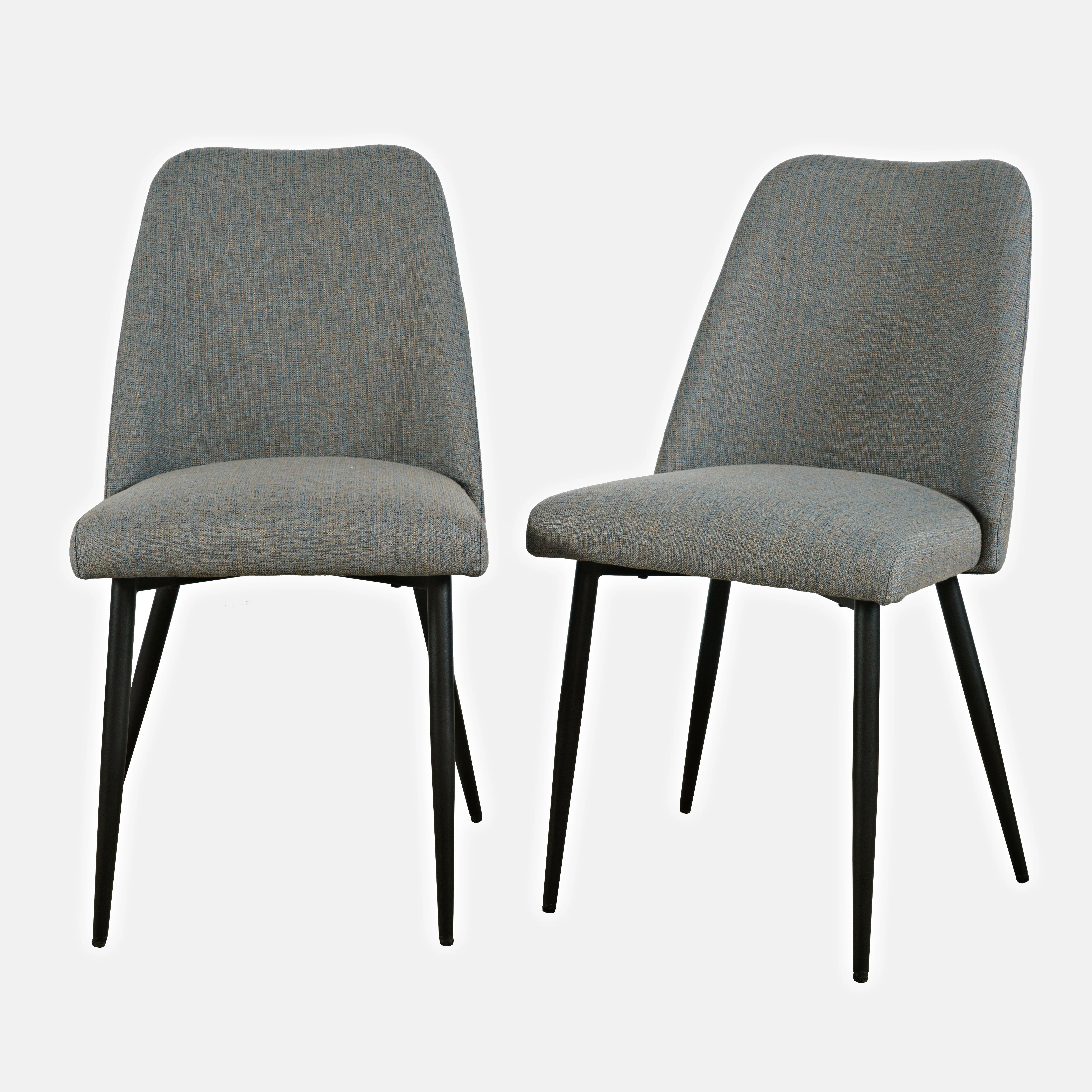 - -Set of Two Dining Chairs -Mid-Century Modern Design -Heathered Fabric Upholstery Adds Visual Contrast -Tapered Metal Legs - - -