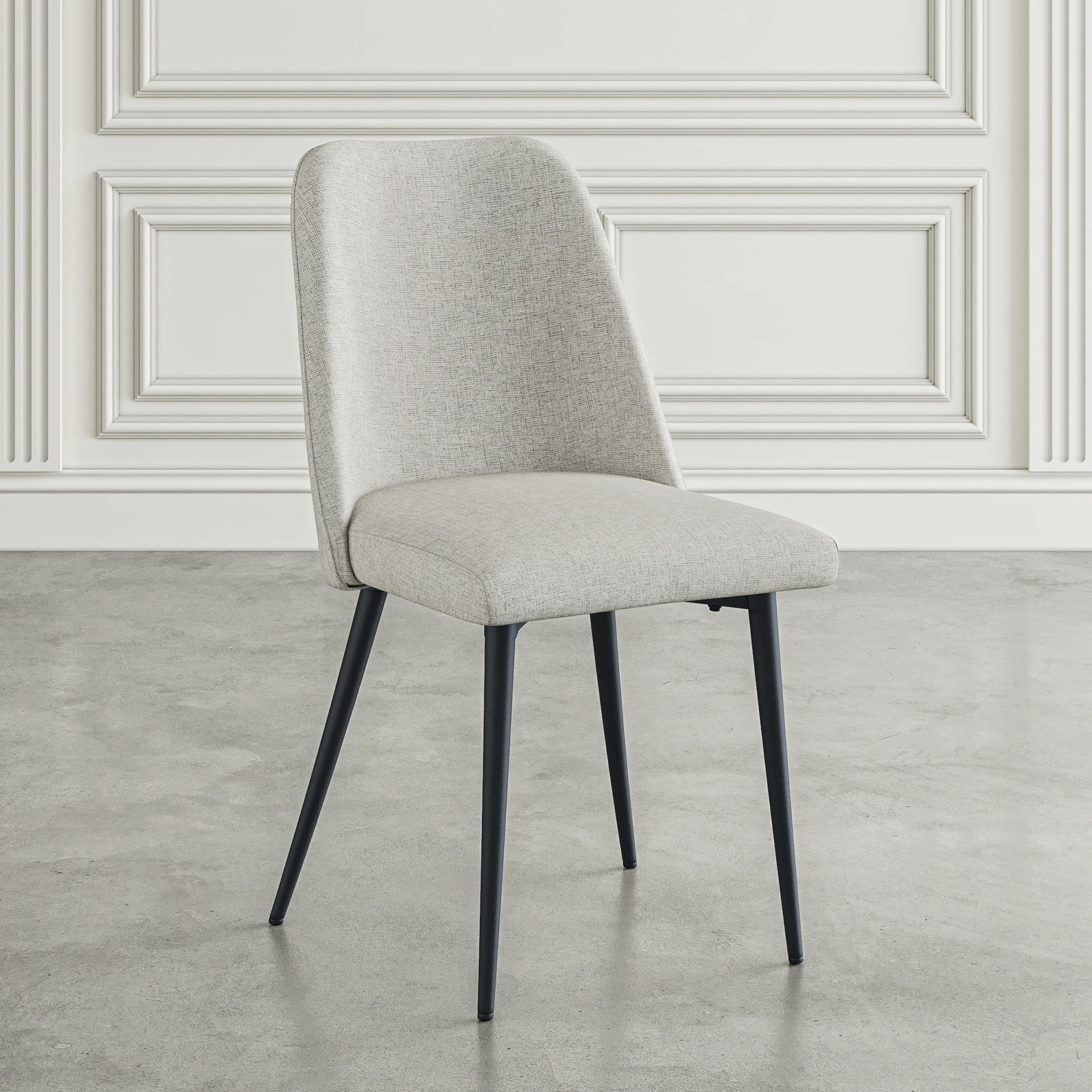 Introducing the Macey Dining Chair, a seamless blend of comfort and mid-century modern allure, designed to elevate your dining space. Meticulously crafted, the Macey features heathered upholstery, available in two refined finishes, adding a touch of sophistication to your home. The chair's distinctive curved back not only provides ergonomic support but also exudes timeless style. Complemented by tapered metal legs, the Macey seamlessly marries form and function with an industrial edge. Whether hosting a lively dinner party or savoring a quiet family meal, the Macey Dining Chair promises more than just a seat-it's an immersive experience. Embrace the art of dining with this signature piece, where modern design meets enduring quality, making every meal a celebration of style.