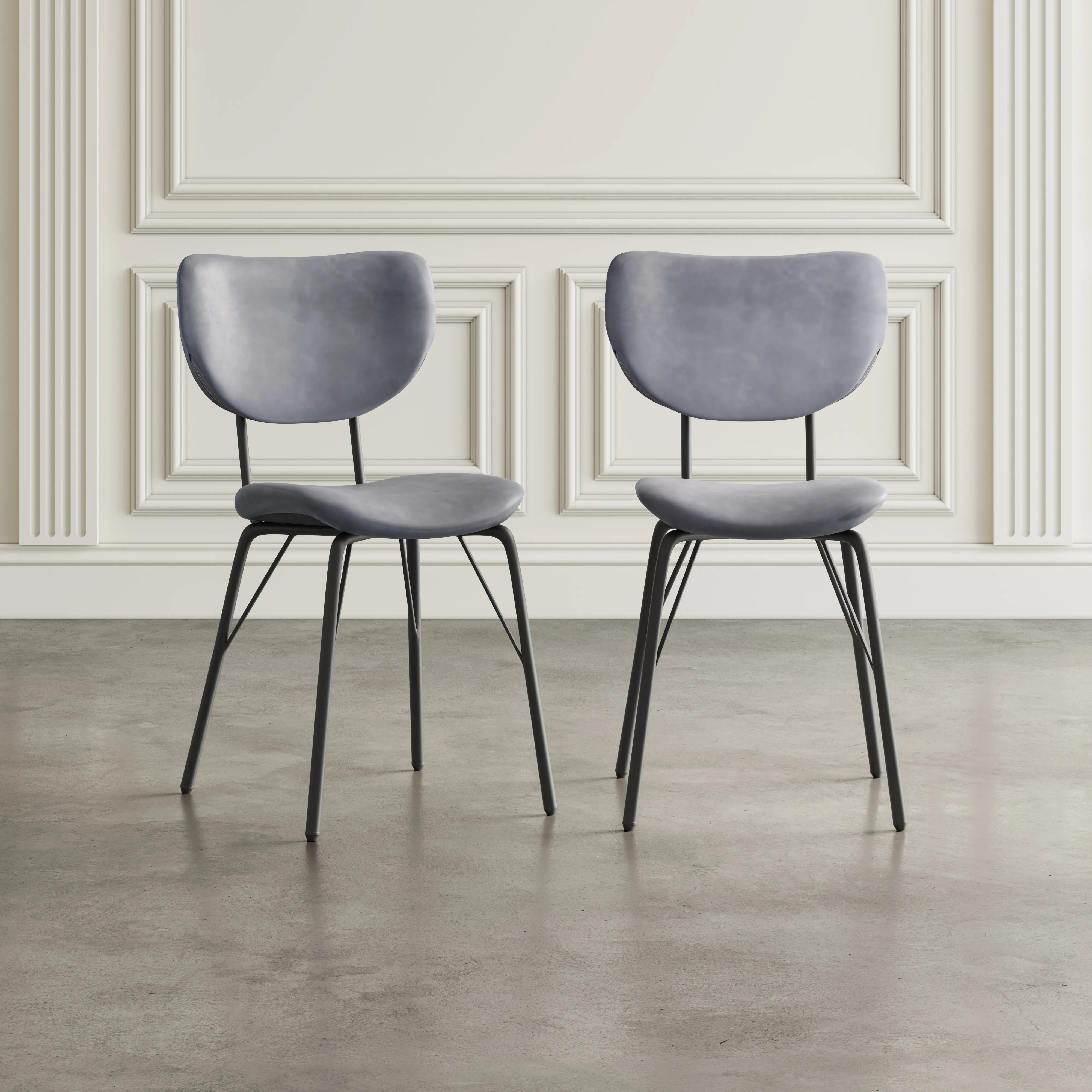 Upgrade the comfort and style of your home with this set of two Owen Dining Chairs. Featuring a modern split-back design and plush faux leather upholstery that creates a comfortable seating experience. The metal frame is solid and assembly is fast and easy using the included hardware pack. Stylish and functional, the Owen dining chair is perfect for additional in your kitchen or dining room. Elevate your living space with this set of two Owen Dining Chairs.