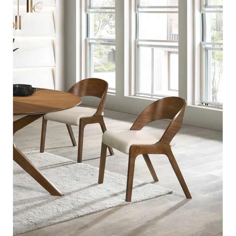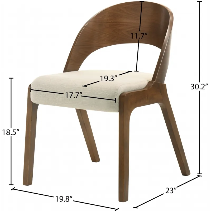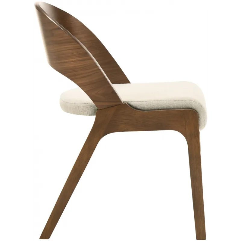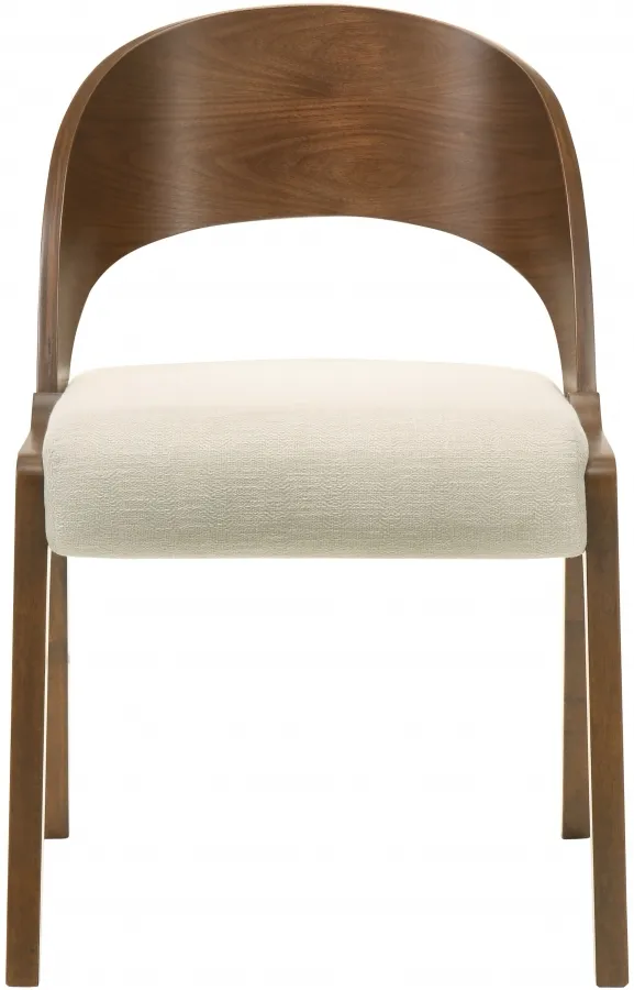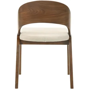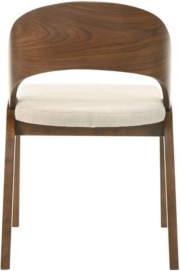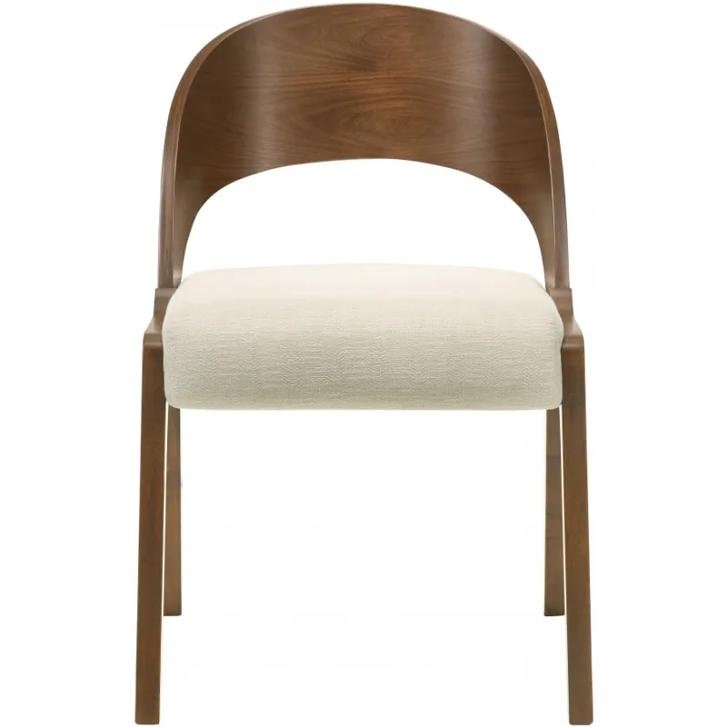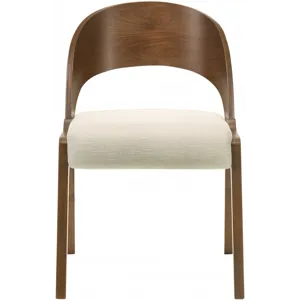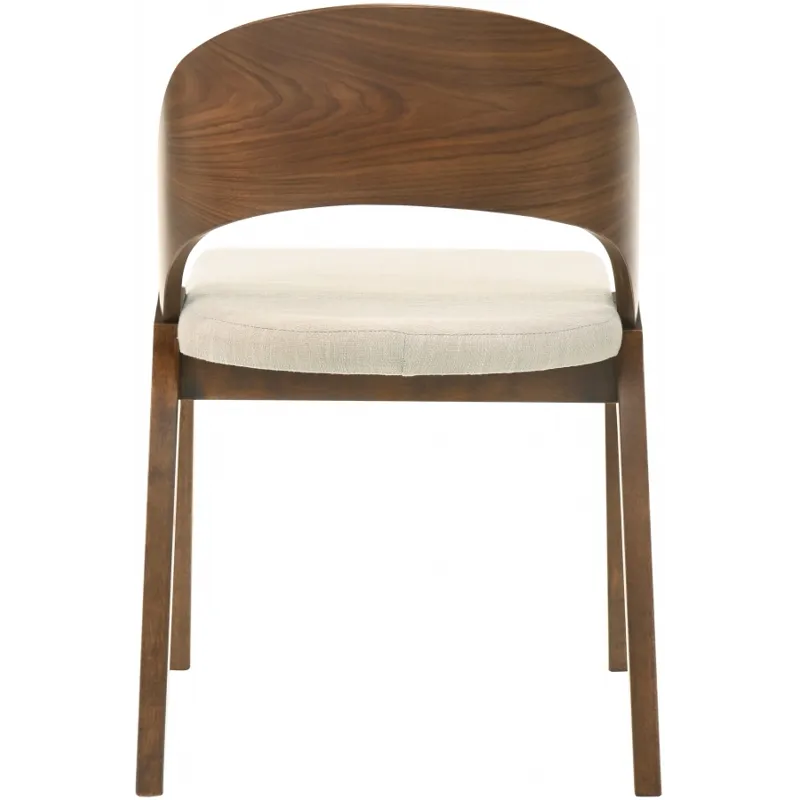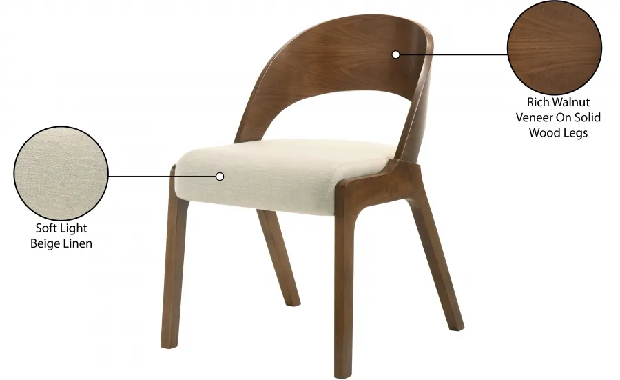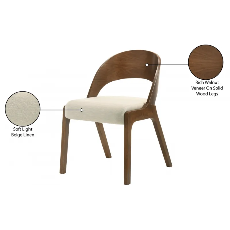 Add a modern touch to your living space with this Woodson dining chair from Meridian Furniture. Featuring a wooden frame with rich walnut veneer on solid wood legs, this chair is designed to last. Soft light beige linen-like polyester fabric upholsters its foam seat, providing a comfortable place for you to sit. Its midcentury modern design is the perfect fit for any contemporary living space, providing your home with a warm touch that stands out.