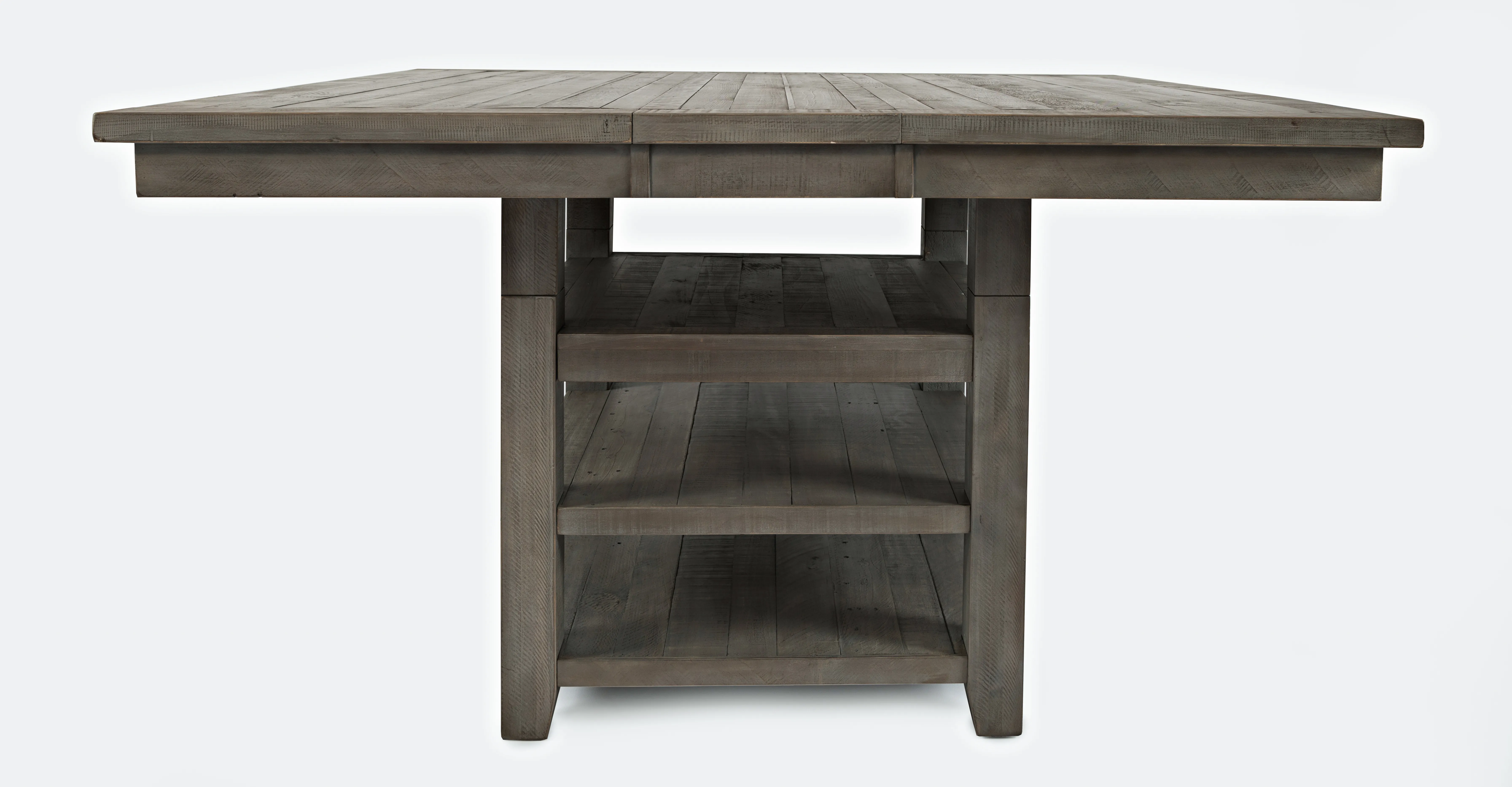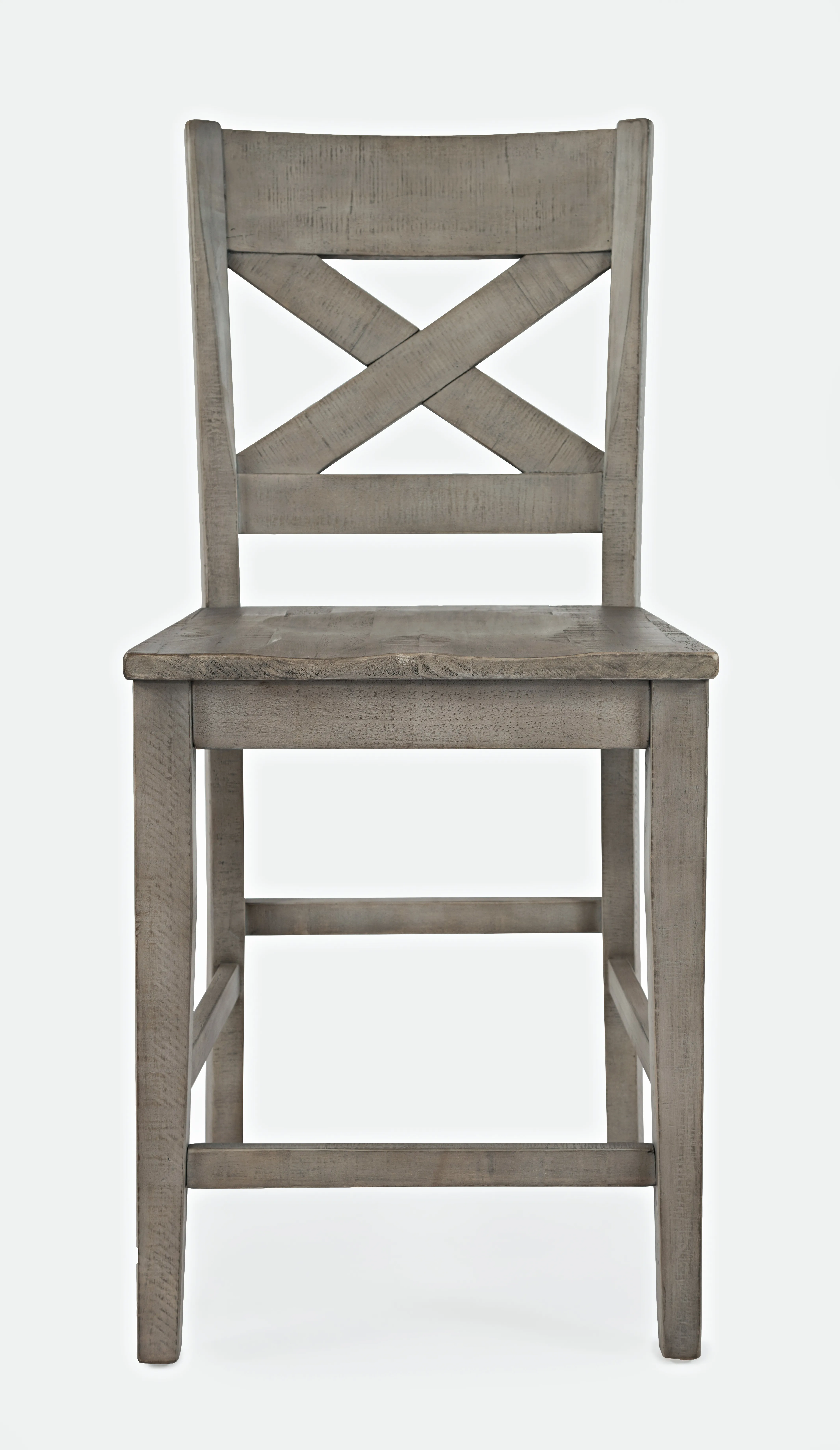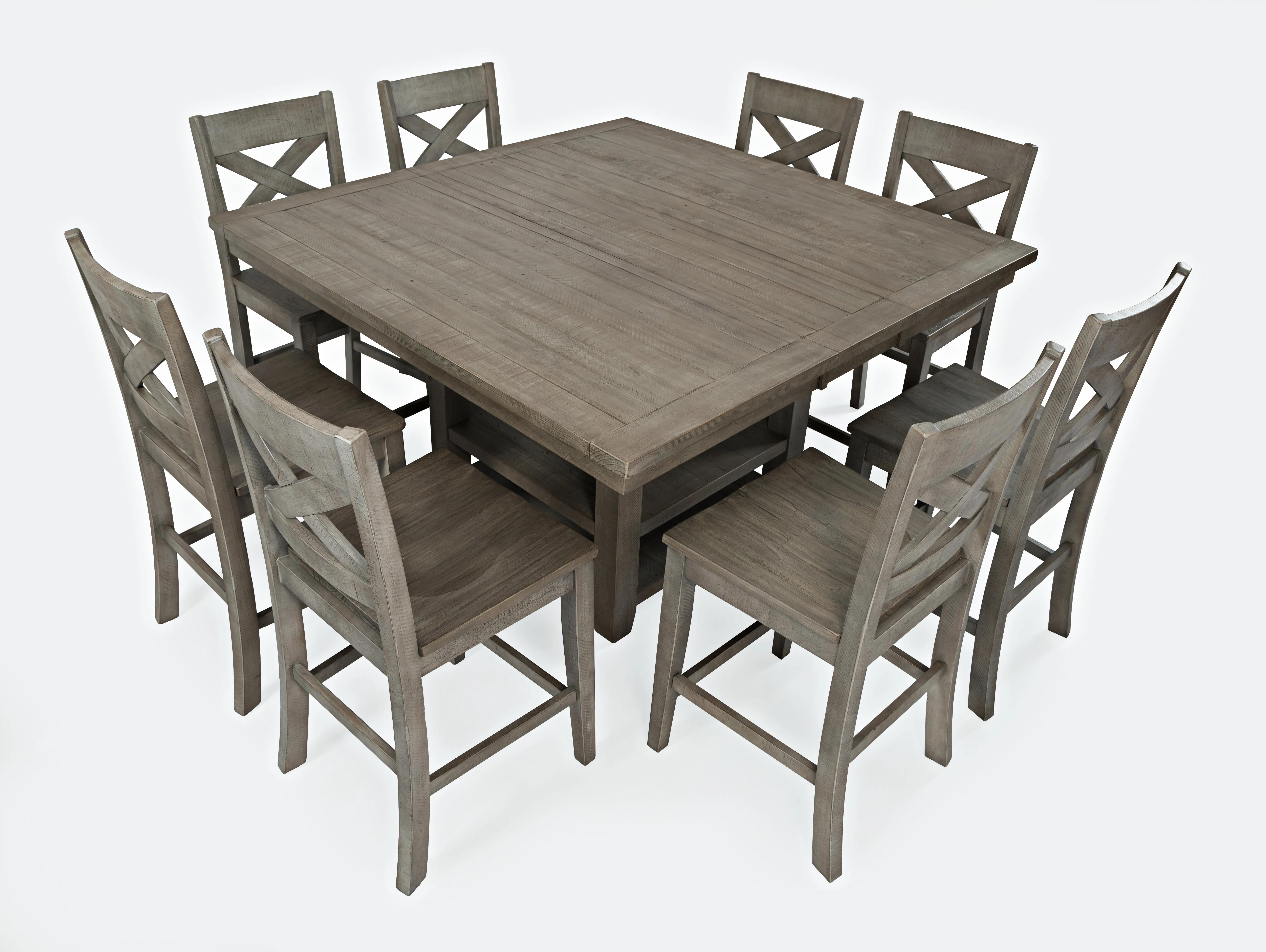 Beautiful coastal details set the Outer Banks Collection in a class of its own. Solid reclaimed pine construction adds character and dimension to pieces that will make your living space something special. This Nine-Piece Counter Height Dining set includes one 60" dining table and eight matching cross-back barstools. With a gentle grey sandblasted and distressed finish, the perfect blend of traditional sophistication and coastal bed and breakfast charm is sure to make a cozy and relaxed addition to your home.