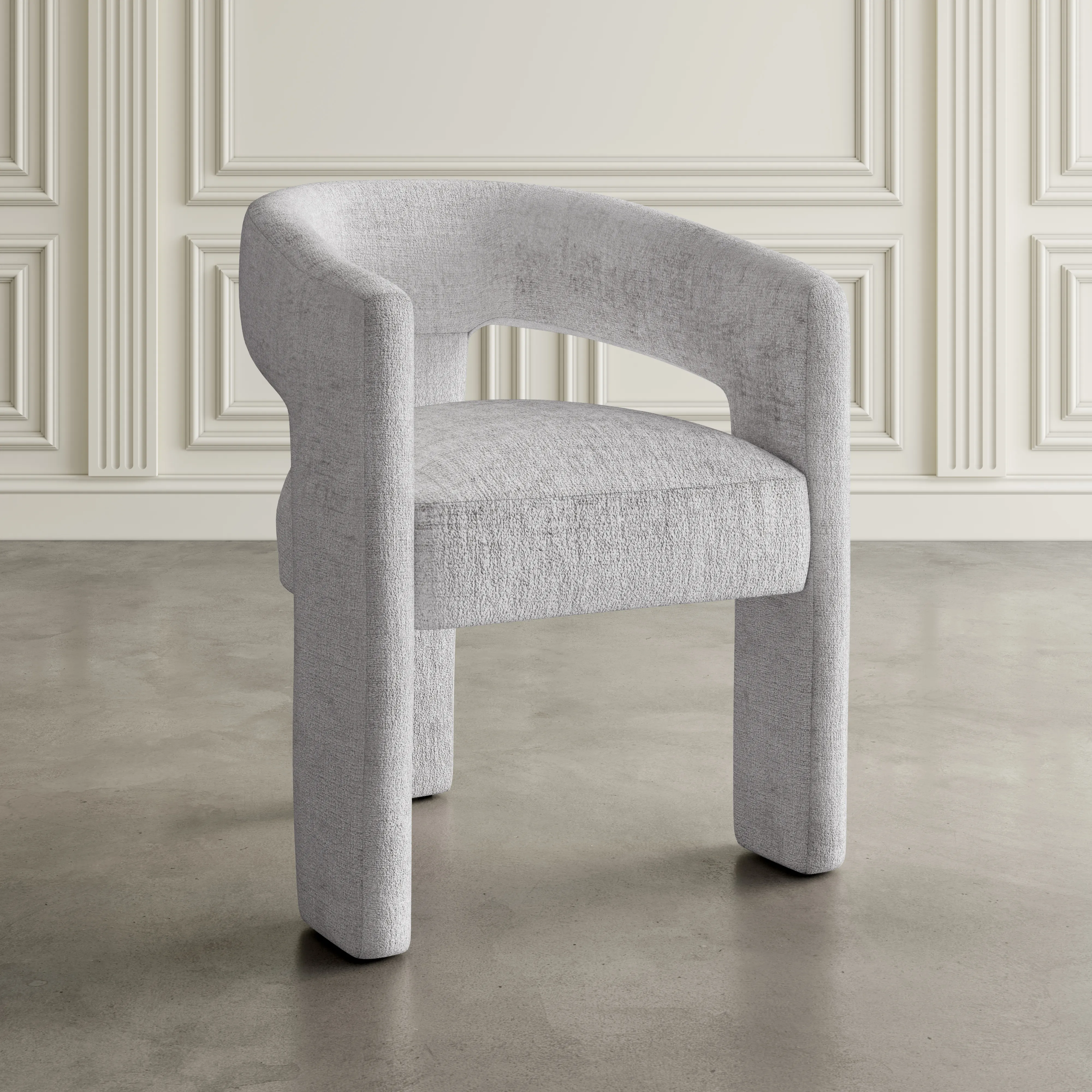 Upgrade your home with the stunningly beautiful Gwen Luxury Mid-Century Modern Five Piece Dining Set. The set includes four matching upholstered dining chairs with plush Jacquard fabric, and a 50 inch modern pedestal dining table. The rounded back with integrated arms offers both flexibility and functionality, making it ideal for use as an accent chair in your living room or as guest seating in your dining room. Crafted with a mid-century modern tapered base and a rich walnut brown finish, the dining table exudes sophistication and elegance. The minimalist design features an enticing curved silhouette that seamlessly blends modern simplicity with daily functionality, perfect for weekday dinners with family or game night with friends.