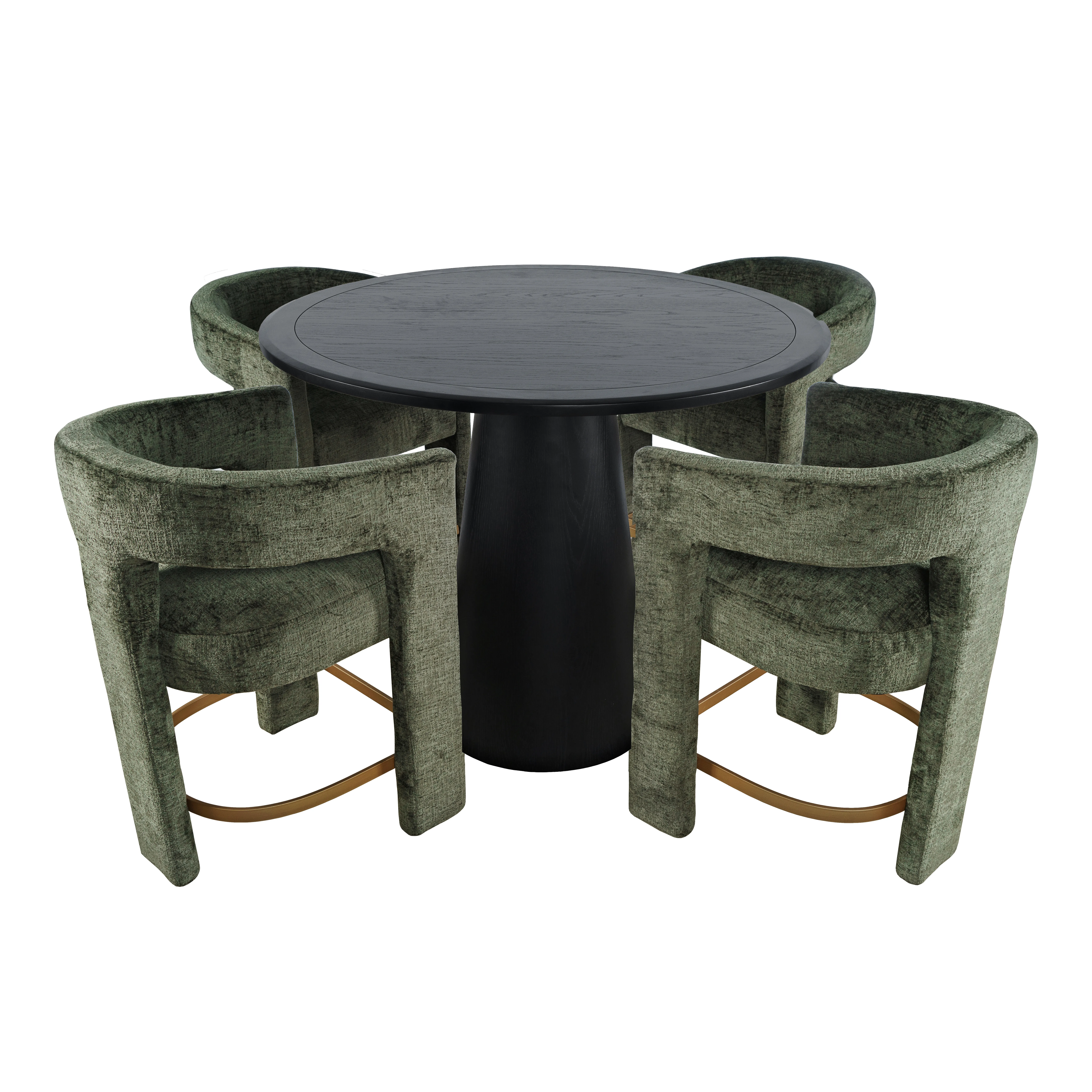 • -Set includes Four Matching Upholstered Stools and One Counter Table -Plush Jacquard Fabric Upholstery -Solid Acacia and Veneer Table Construction -Mid-Century Modern Pedestal Style - - -