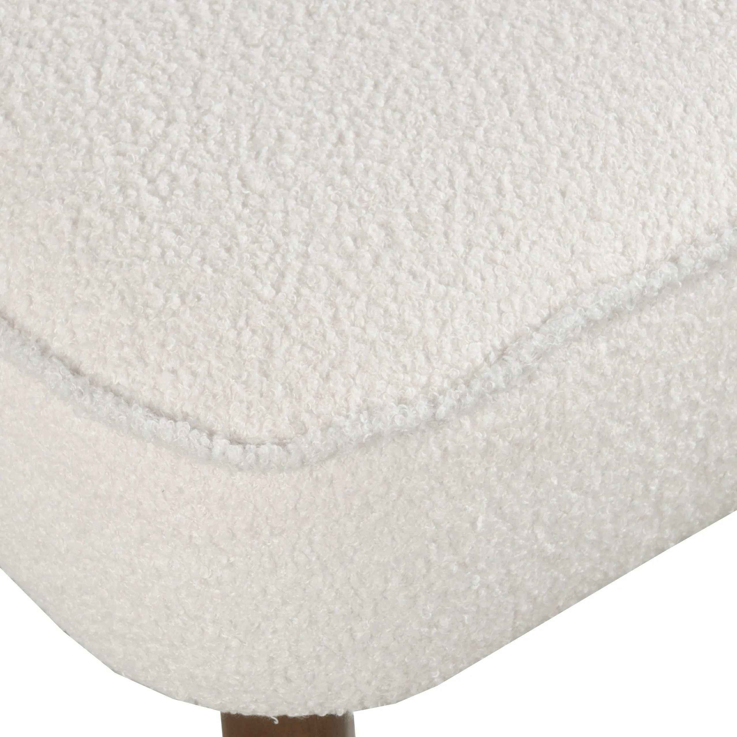 • -Set Includes One 50" Pedestal Dining Table and Four Matching Dining Chairs -Mid-Century Modern Ivory Boucle Upholstery -Chairs have Natural Solid Rubberwood Frame -Solid Acacia and Veneer Pedestal Table -1.5" Thick Table Top - -