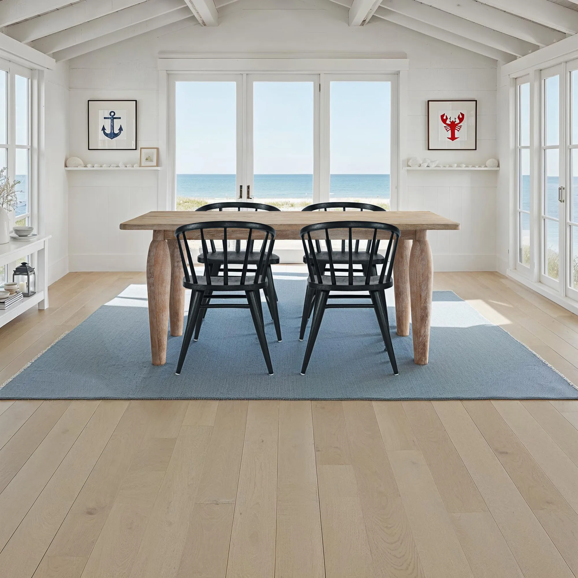 Spader Coastal Modern 5-Piece Dining Set With Solid Wood Table And Spindle Back Chairs