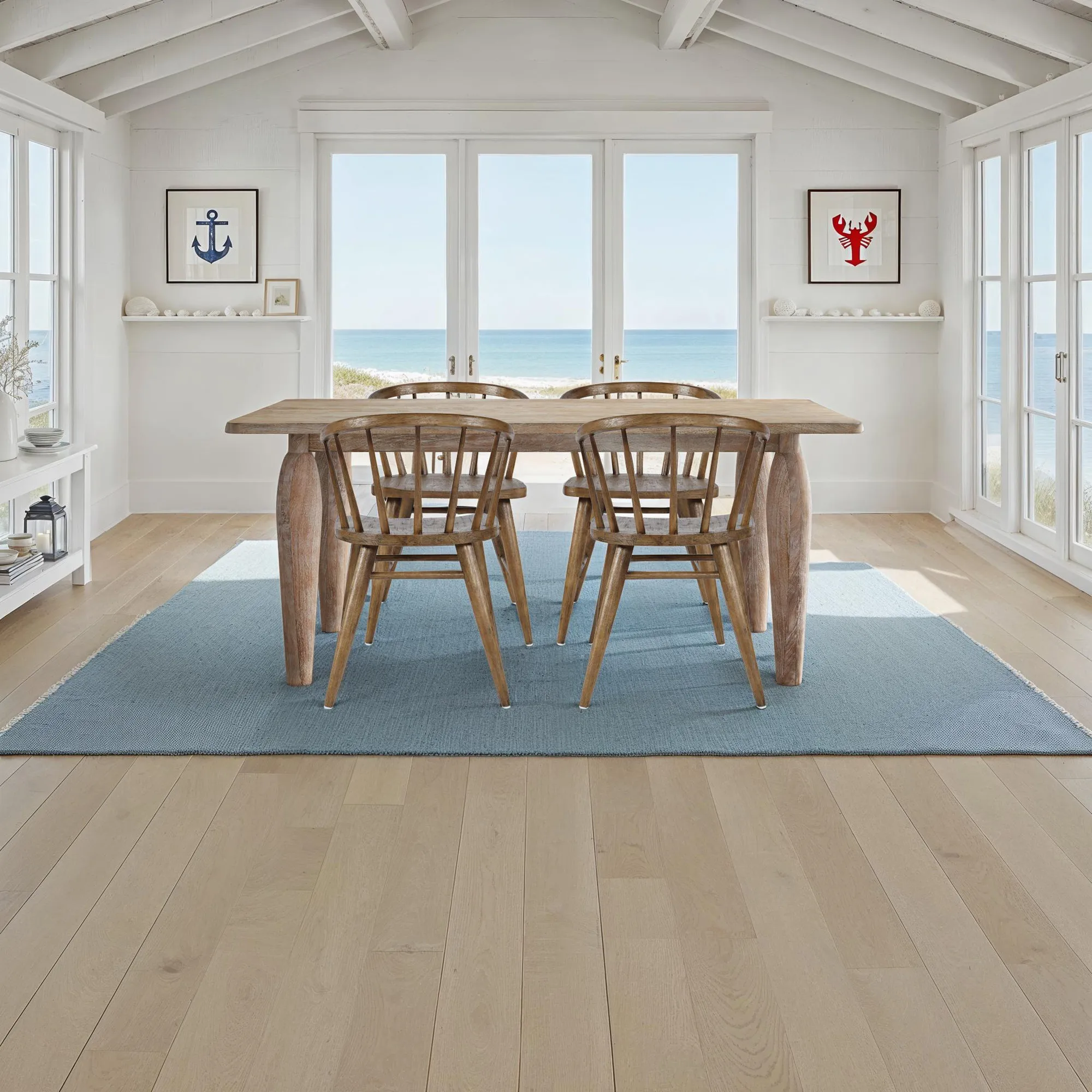 Spader Coastal Modern 5-Piece Dining Set With Solid Wood Table And Spindle Back Chairs