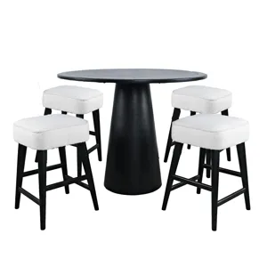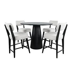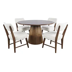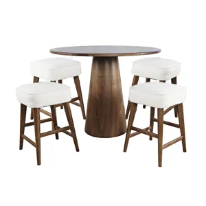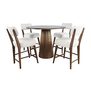 Upgrade your home with the stunningly beautiful Nash Round 45" Pedestal Counter Dining Table. Crafted with a mid-century modern tapered base and a rich walnut brown finish, this dining table exudes sophistication and elegance. The minimalist design features an enticing curved silhouette that seamlessly blends modern simplicity with daily functionality, perfect for weekday dinners with family or game night with friends. This Dining Table boasts a sophisticated modern finish with a natural grain pattern that creates a timeless look, sure to elevate your dining room experience. Whether you're entertaining guests or enjoying a quiet meal with your family, this dining table is the perfect centerpiece for any occasion with the perfect balance of style and functionality.