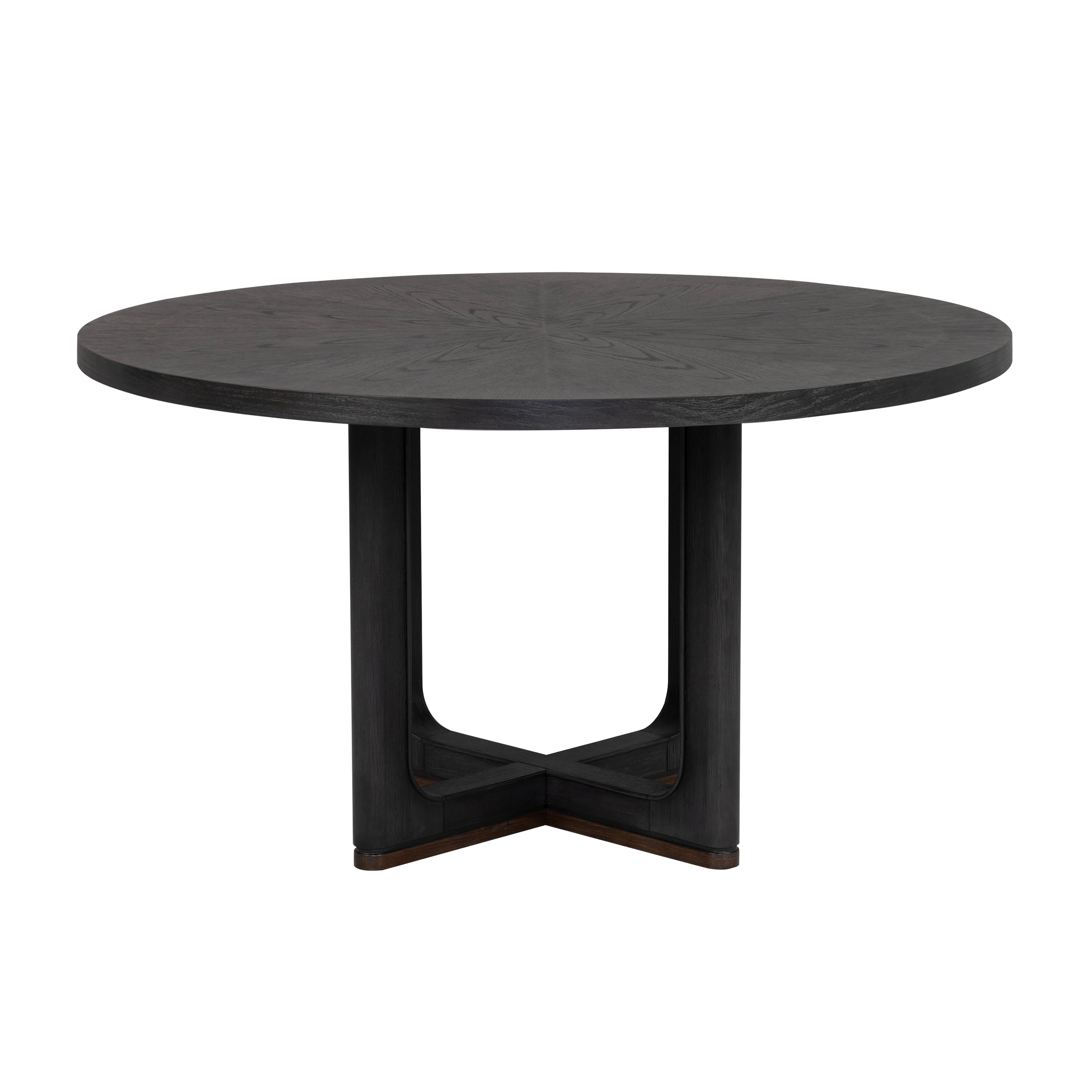 The perfect centerpiece for your next dinner party, this gorgeous dining table brings the ultimate in transitional style. The deep ebony finish fits seamlessly with the rich brown base accents for an on-trend color combination. Meticulously crafted from rubberwood solids and oak veneers, this piece is built to be everlasting. Perfectly fitting into any space, this table can accommodate up to four guests. Rich colors and clean lines give this table true elegance.