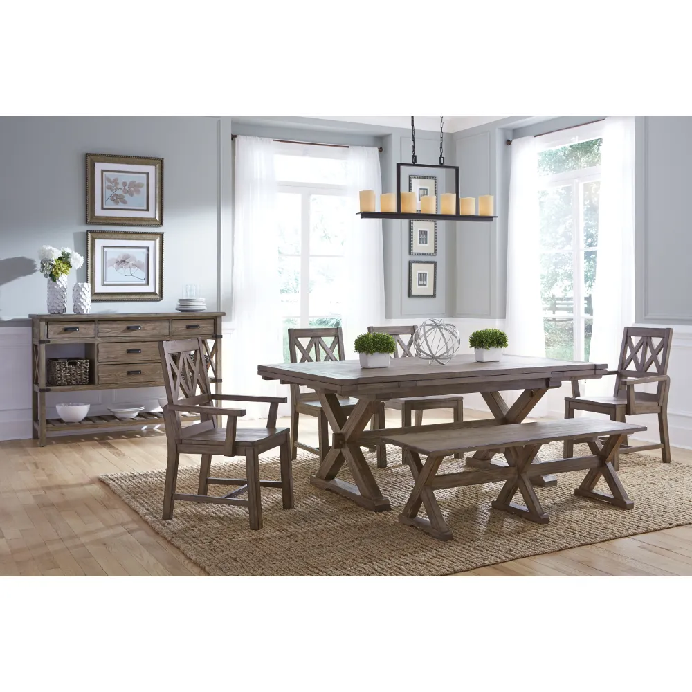The Sawbuck Dining Table is one of our most popular dining tables. The solid wood construction - in this case Norwegian Spruce - is finished using the protective Kinguard finish making it perfect for active families and entertaining. The coolest feature, however, are the integrated storage leaves. This feature makes it easy to add an additional 18 inches to either end without having to store, locate, carry and open the table just to add seating. The table extends from 74 inches long, to 92 inches long with one leaf extended or up tp 110 inches with both leaves extended.