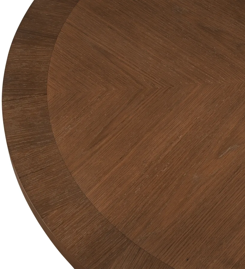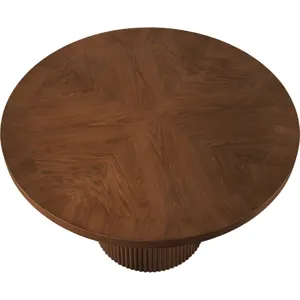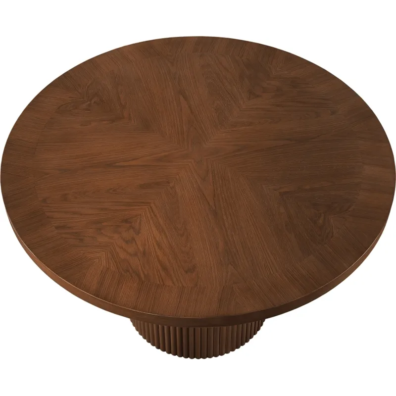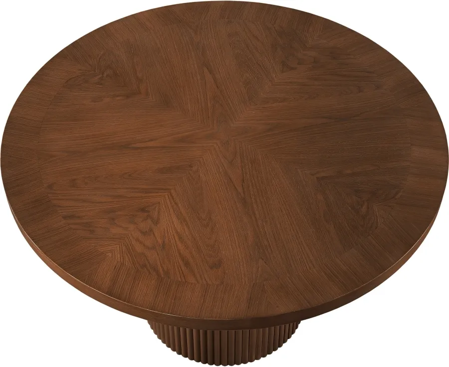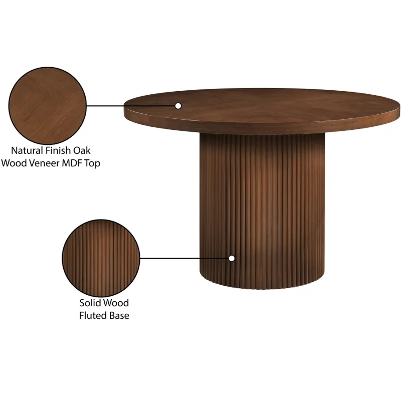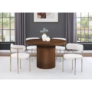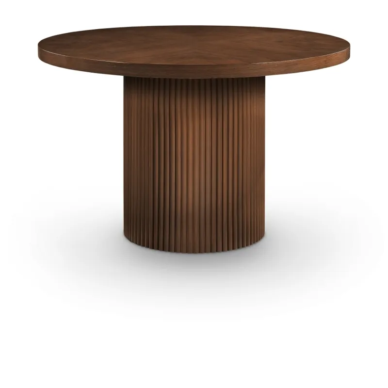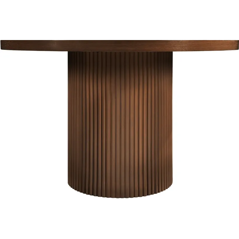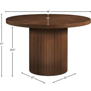 Give your dining room or eat-in kitchen a casual vibe with this Belinda dining table. A solid wood base and resilient construction offers impeccable durability and remarkable beauty. The round top rests on the fluted base, providing oodles of elbow room for family and friends to get comfortable while they nosh on their meal. The chair's made from wood and wood products for resilience, and its neutral Brown finish lets it mesh well with the dining chairs or stools of your choice.