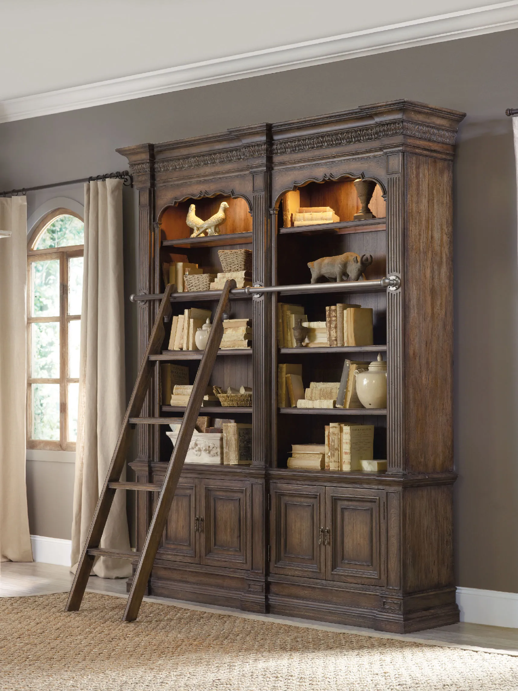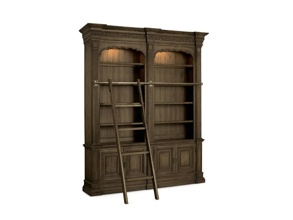 HookerHome Office Rhapsody Double Bookcase with Ladder and Rail