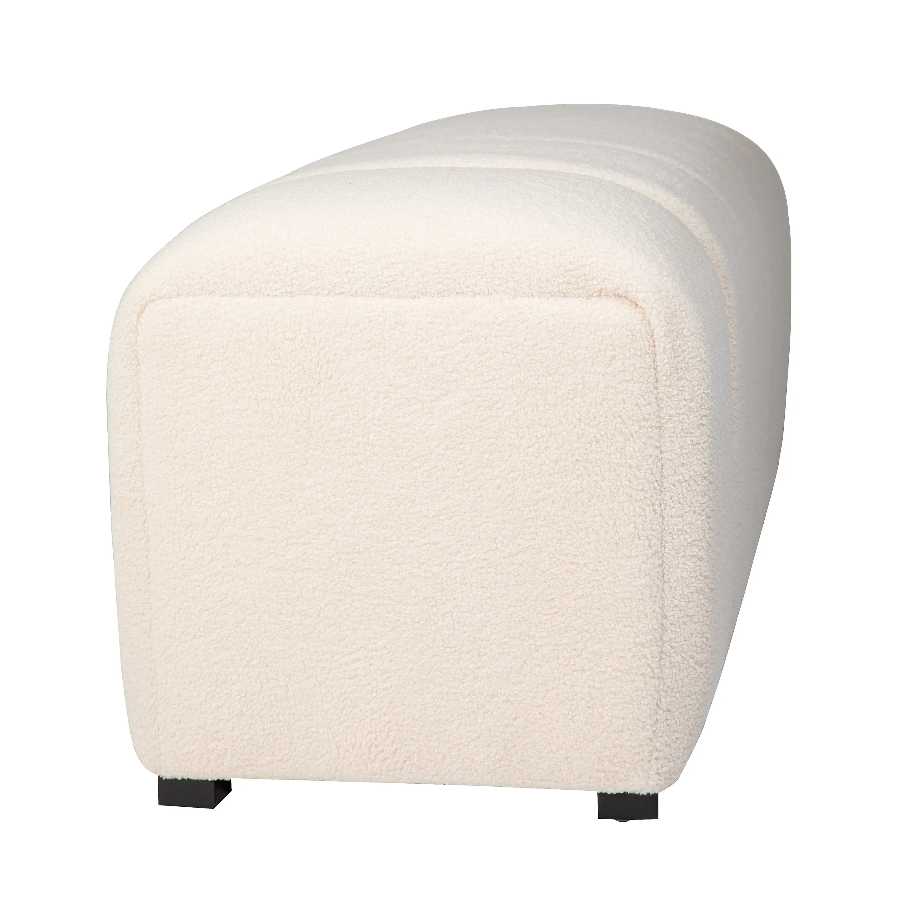 A stunning addition to any modern living space, the Tess Upholstered Bench is a unique upgrade with sophisticated Ivory Boucle textured fabric that exudes sophistication and elegance. The soft plush style adds visual depth and contrast making this the perfect accent piece for the bedroom, dining room or living room. The seating is extra soft and plush, providing comfort and relaxation anywhere in your home. The Tess Upholstered Bench boasts a subtle contemporary design that seamlessly integrates into any decor, making it a versatile addition to your home. Not only does it enhance the aesthetic appeal of your room, but it also becomes your go-to spot for comfortable seating.