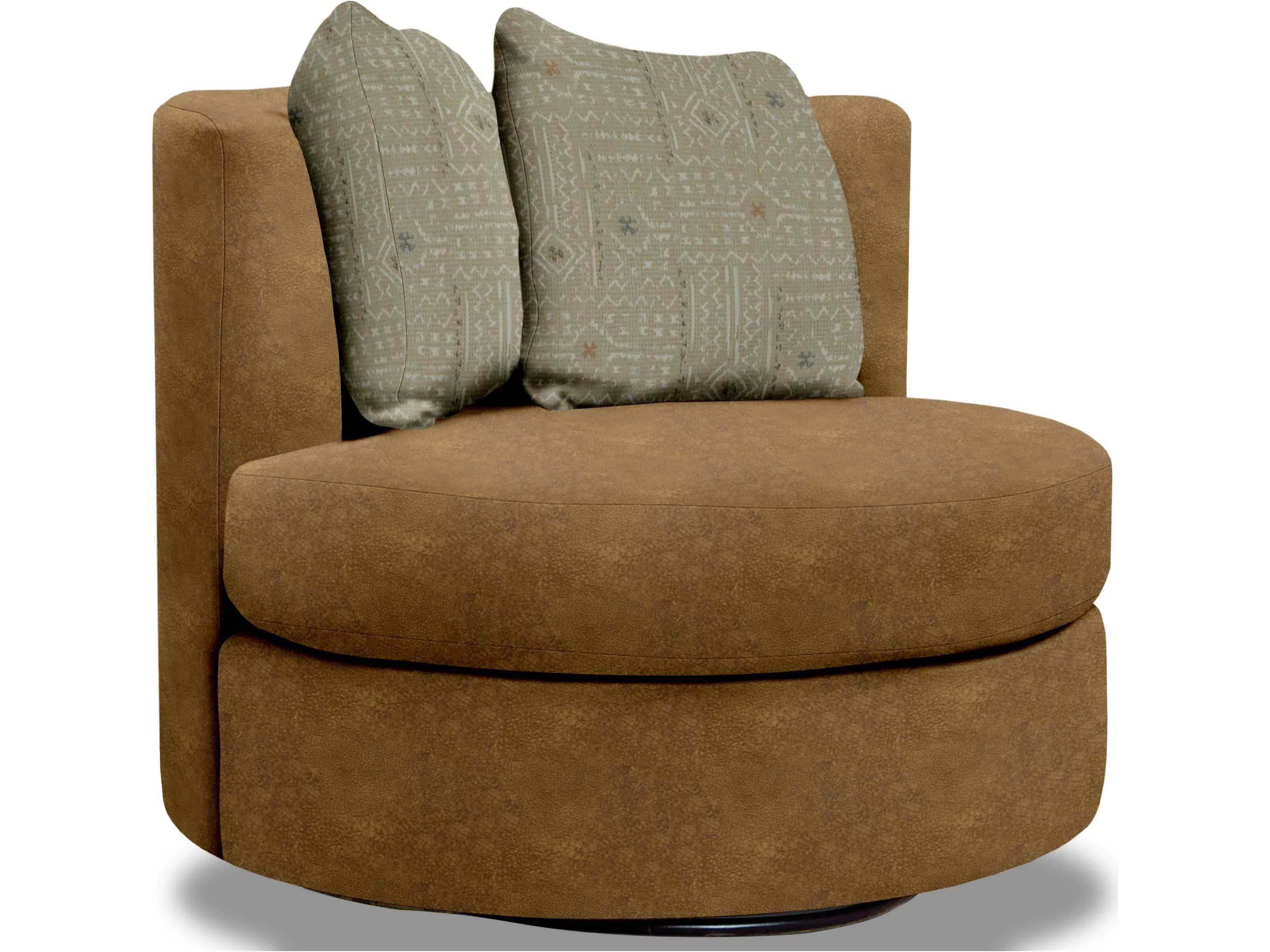 The Ellis swivel glider boasts a loose pillow back, plush seat, and a whole lot of casual style.