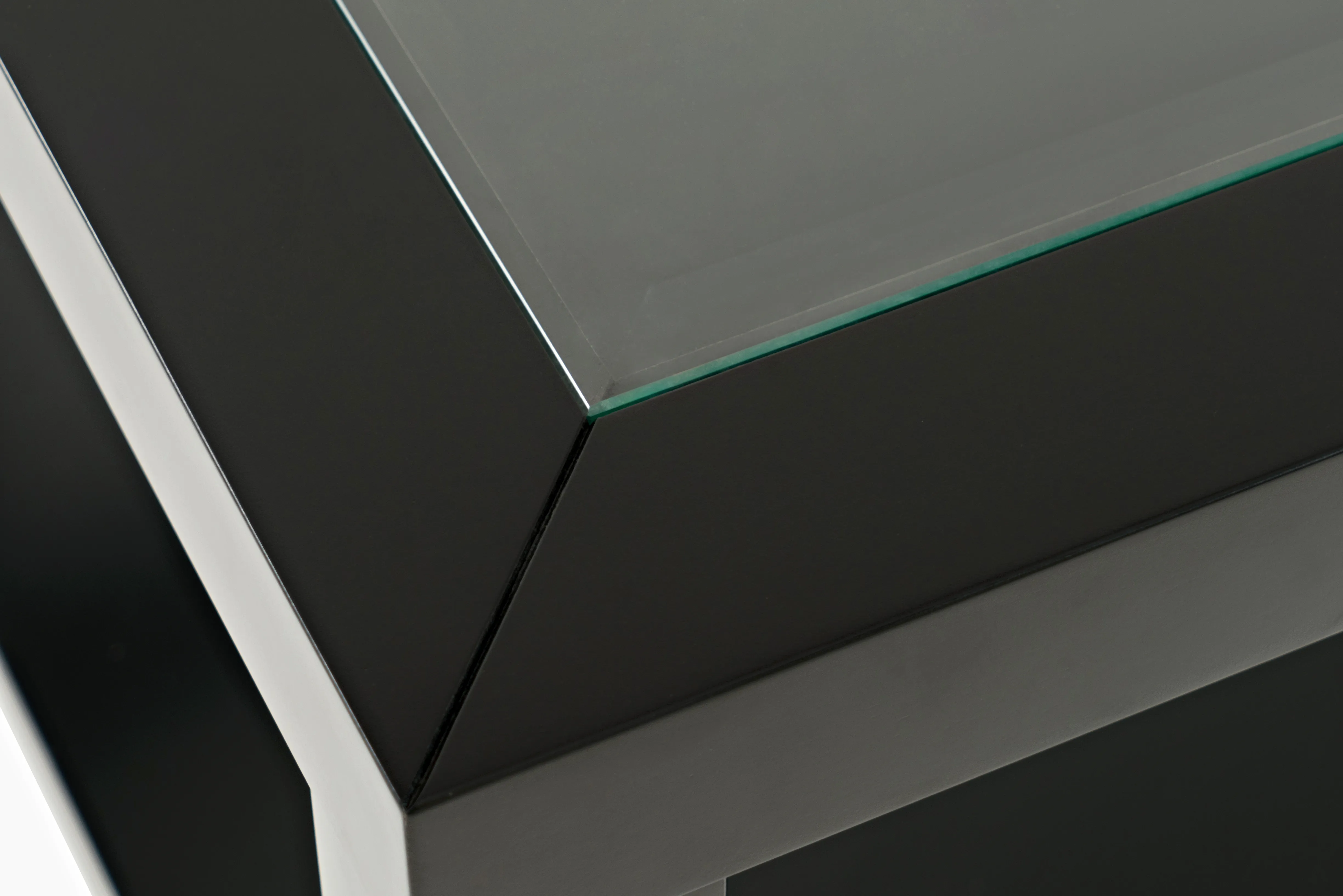 - -Castered Wheels -Solid Tempered and Beveled Glass -Dimensions: 48"W x 26"D x 19"H -Assembly Required - - -
