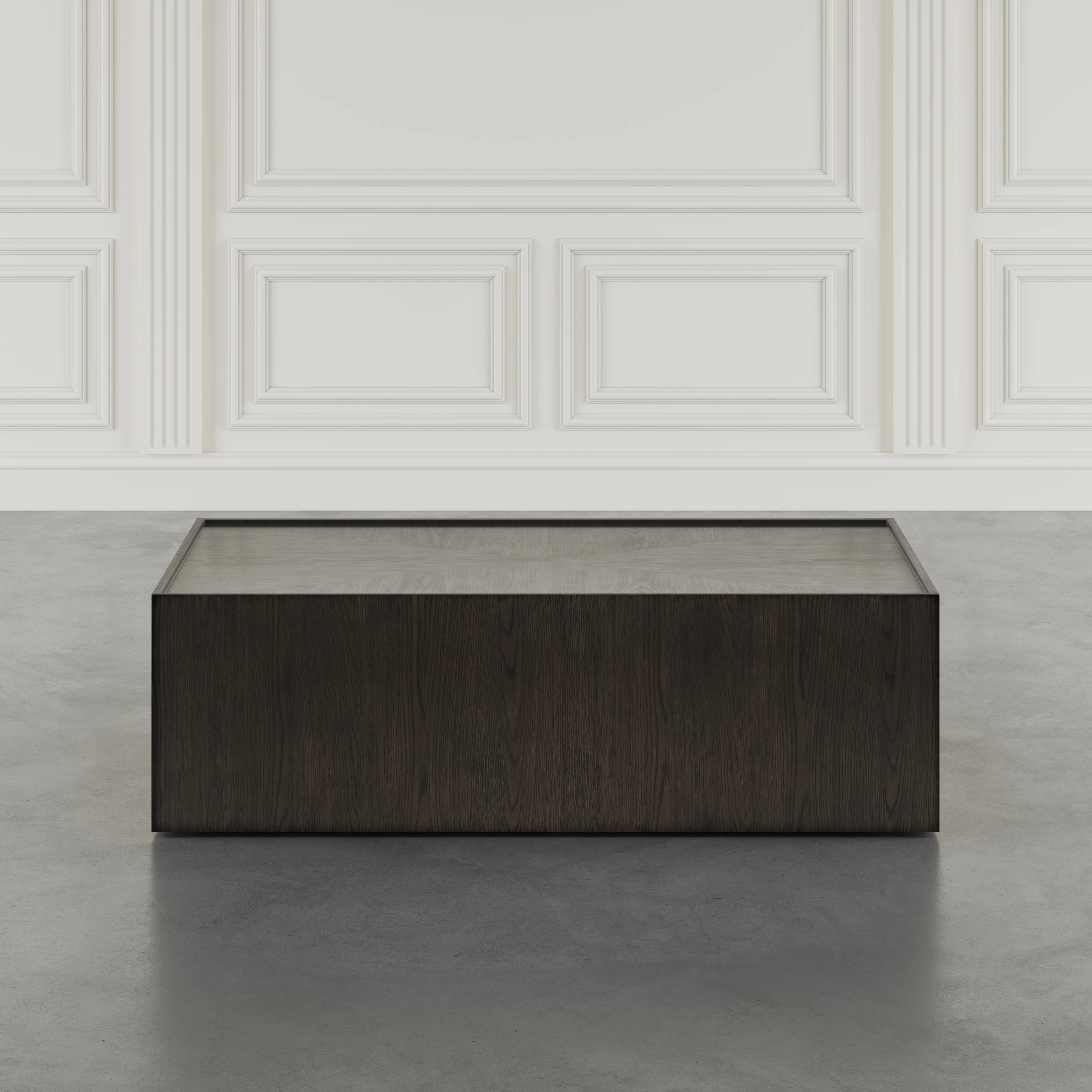 A bold statement in contemporary design, the Laurel Creek 52" Coffee Table combines geometric precision with modern functionality. Crafted from engineered wood, acacia, and veneer, this substantial coffee table showcases a block-style silhouette that exudes sophistication. The top surface features a subtle parquet-style grain pattern, adding depth to its streamlined form. Hidden caster wheels provide effortless mobility while maintaining a seamless aesthetic. Perfect for a modern living space, this table delivers both form and function with understated elegance.