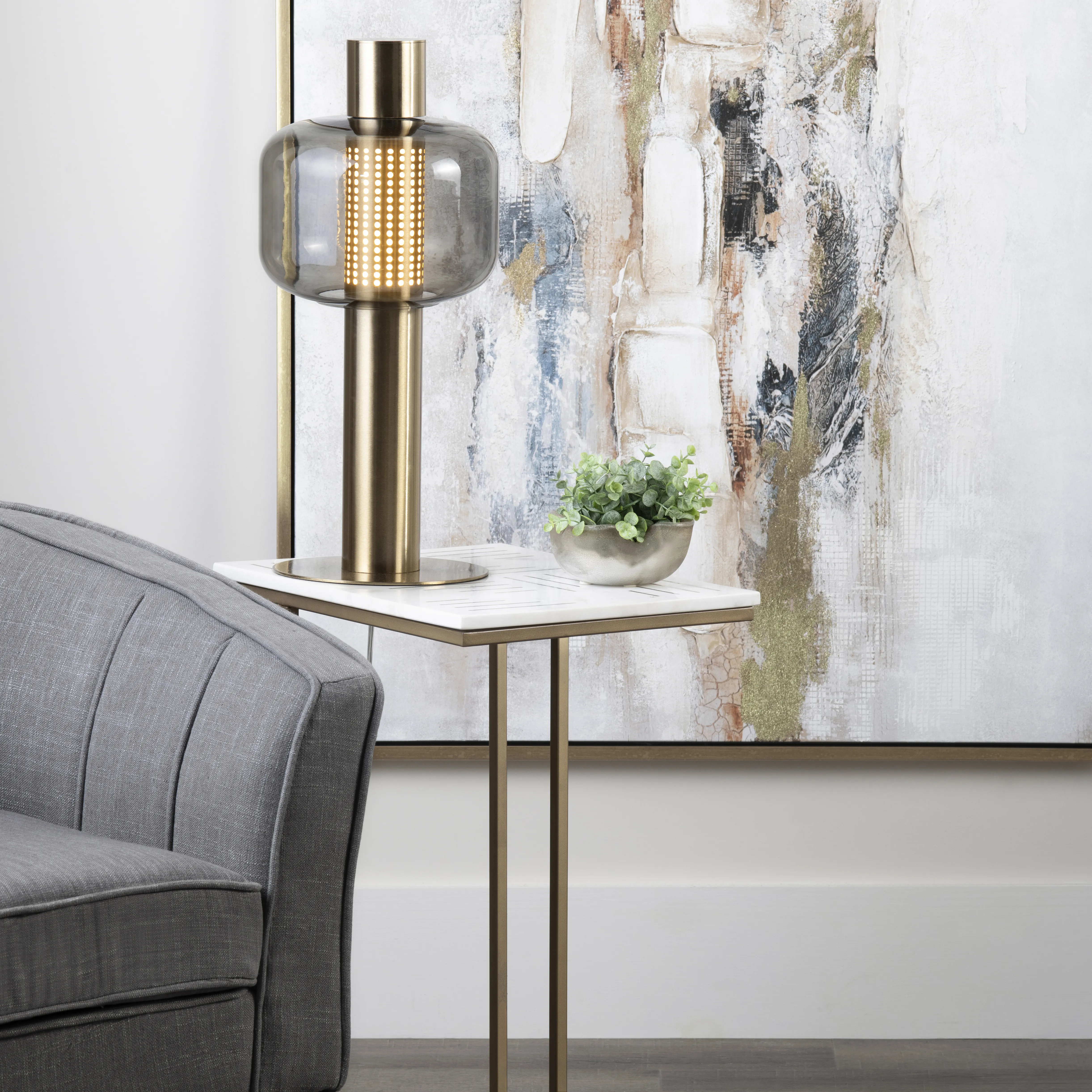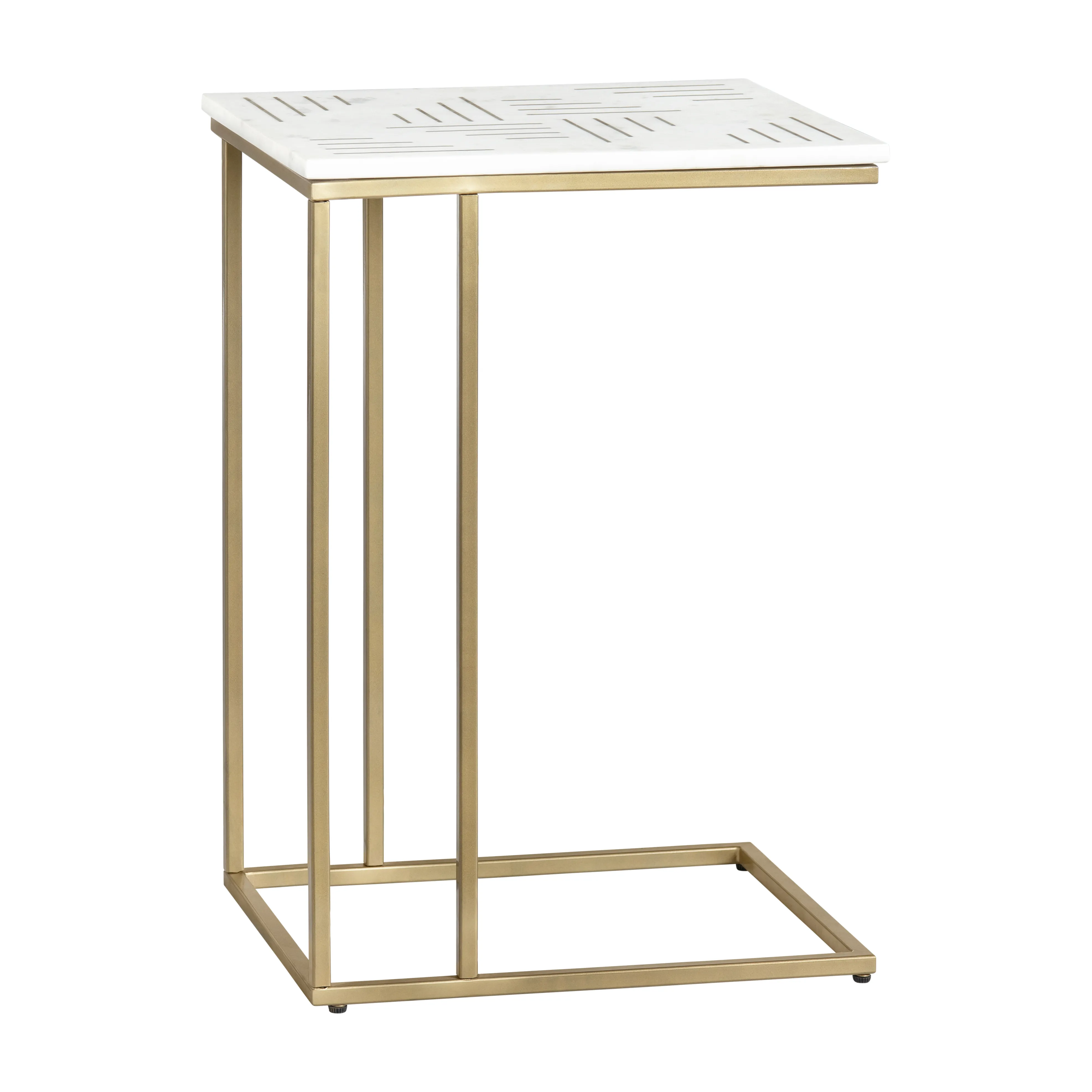 This modern accent table combines elegance and functionality with its polished white marble top featuring subtle gray veining and sleek gold-painted iron legs. The rectangular top showcases linear gold inlays for a refined geometric design. Adjustable levelers ensure stability on any surface, and assembly is simple—just attach the legs. The marble's natural beauty and the minimalist gold frame create a sophisticated statement piece, perfect for elevating any living space