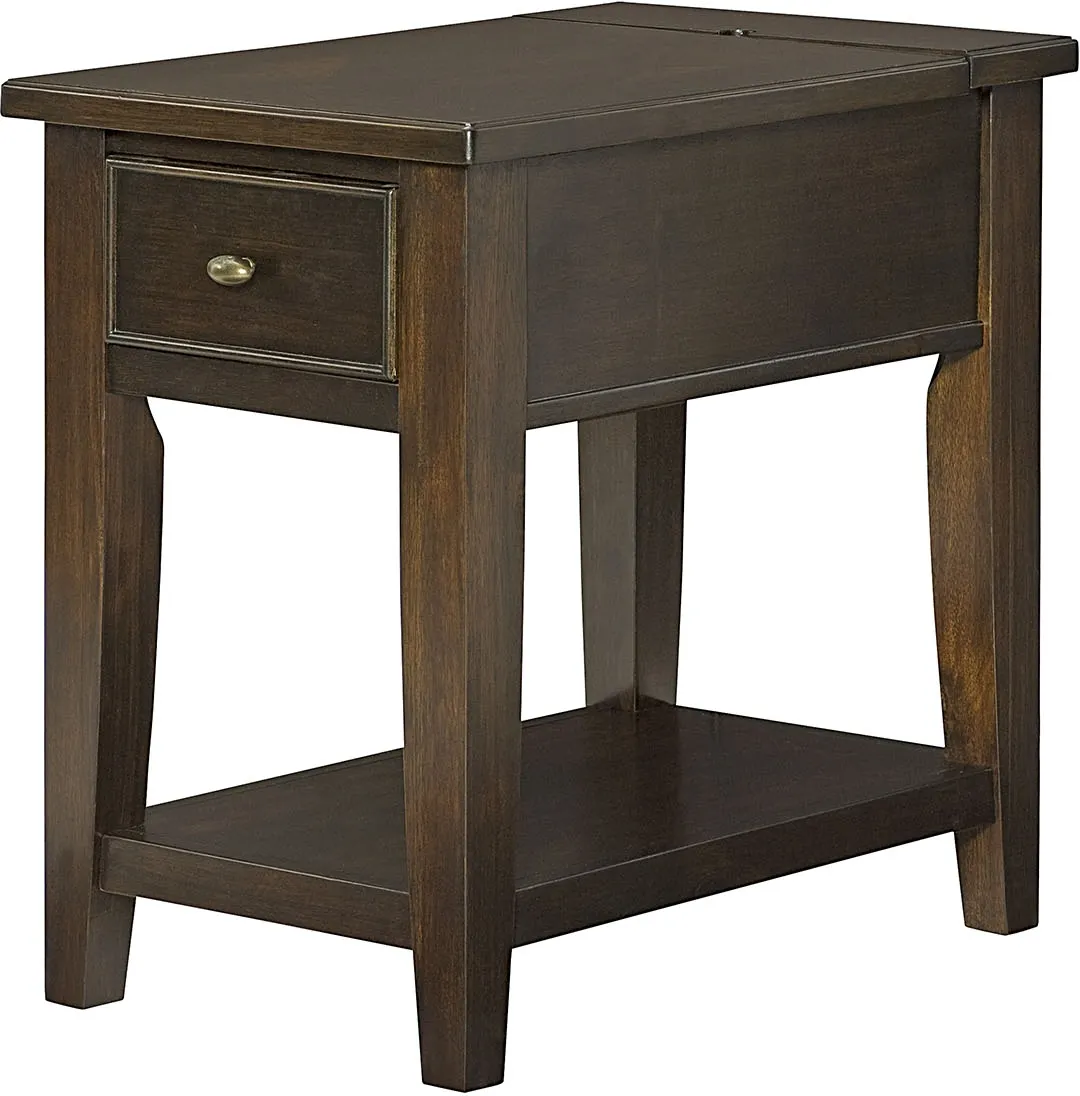 1 Drawer, Power bar w USB under flip top lid, 1 Fixed shelf.