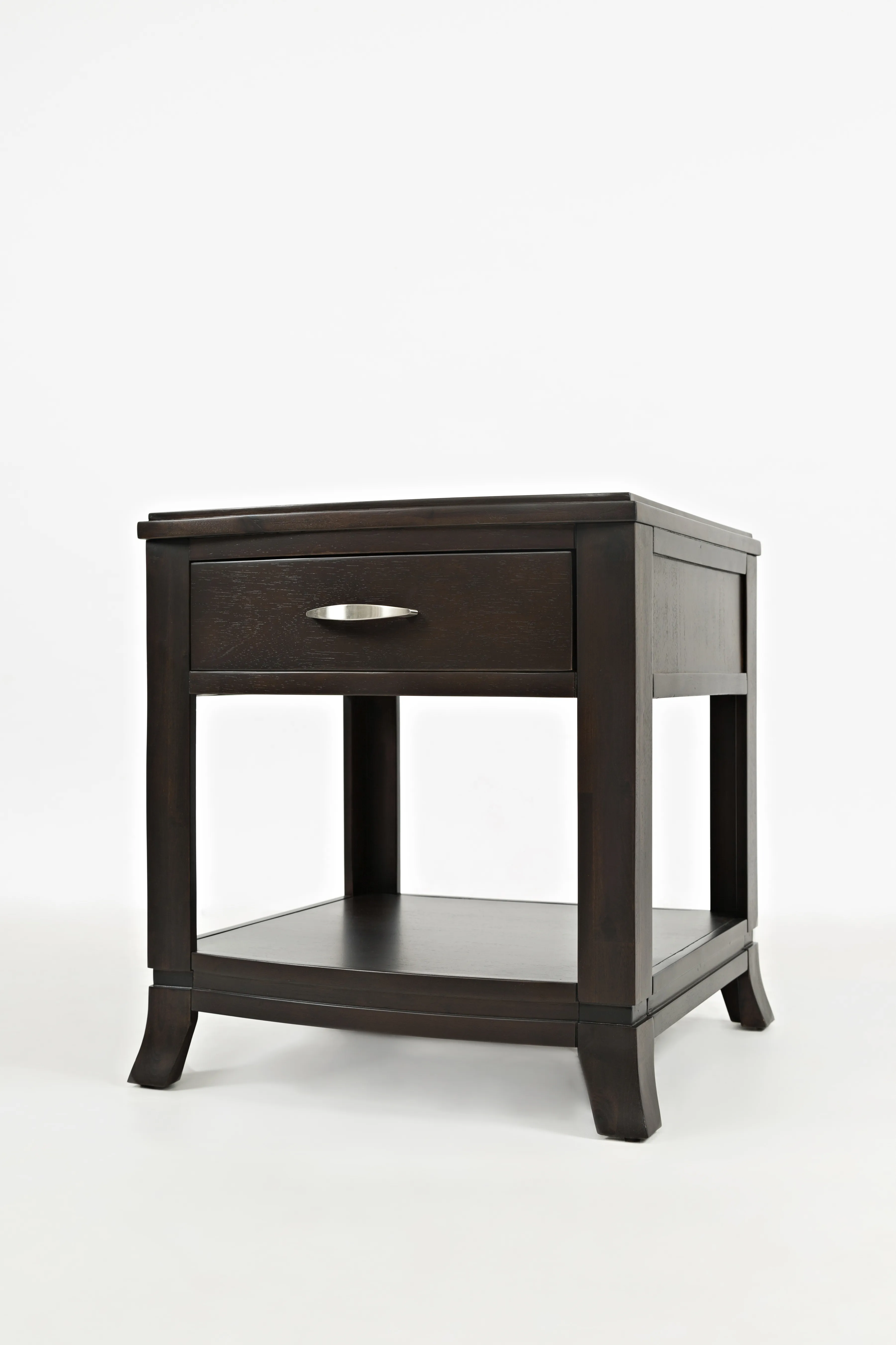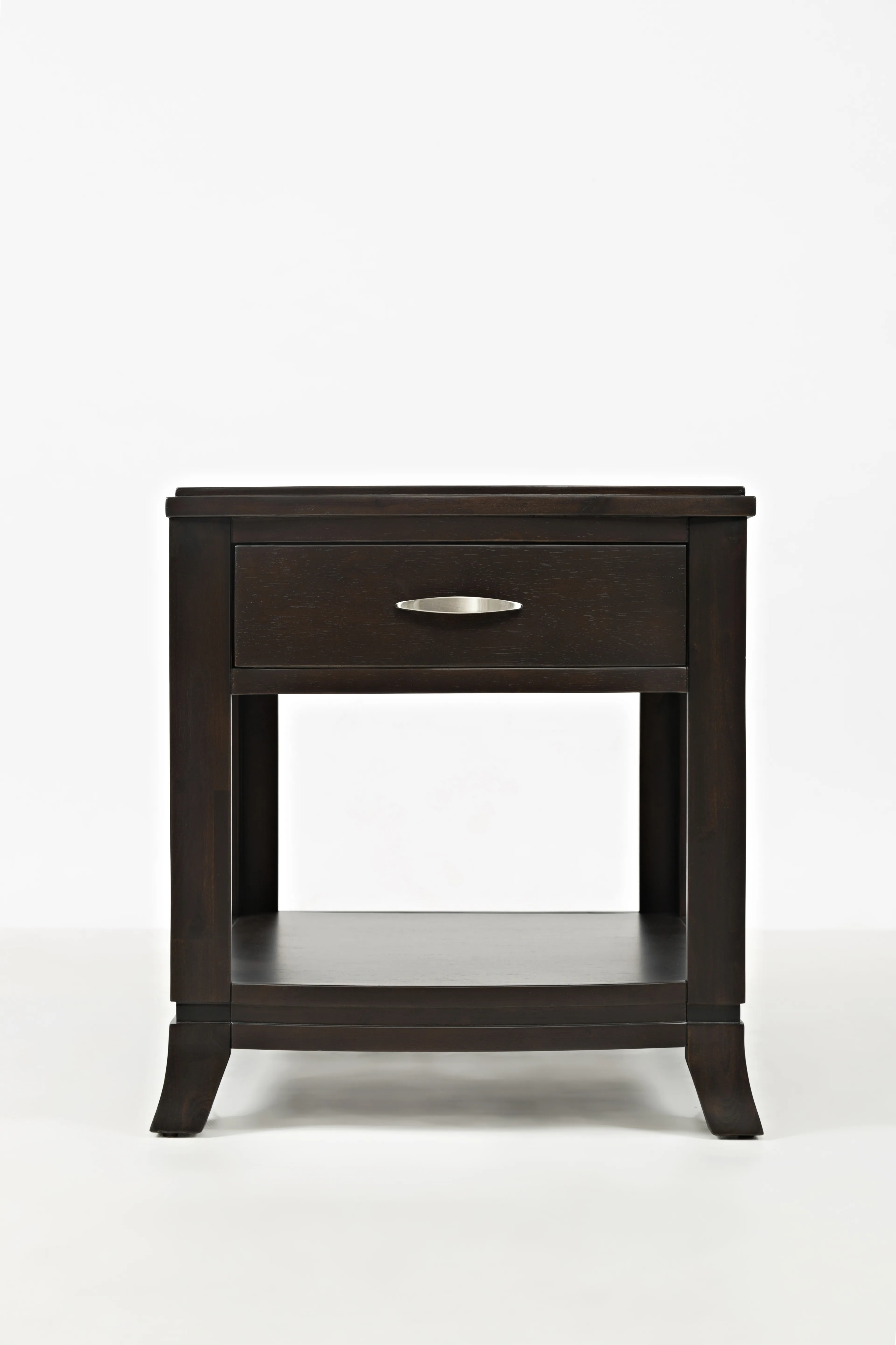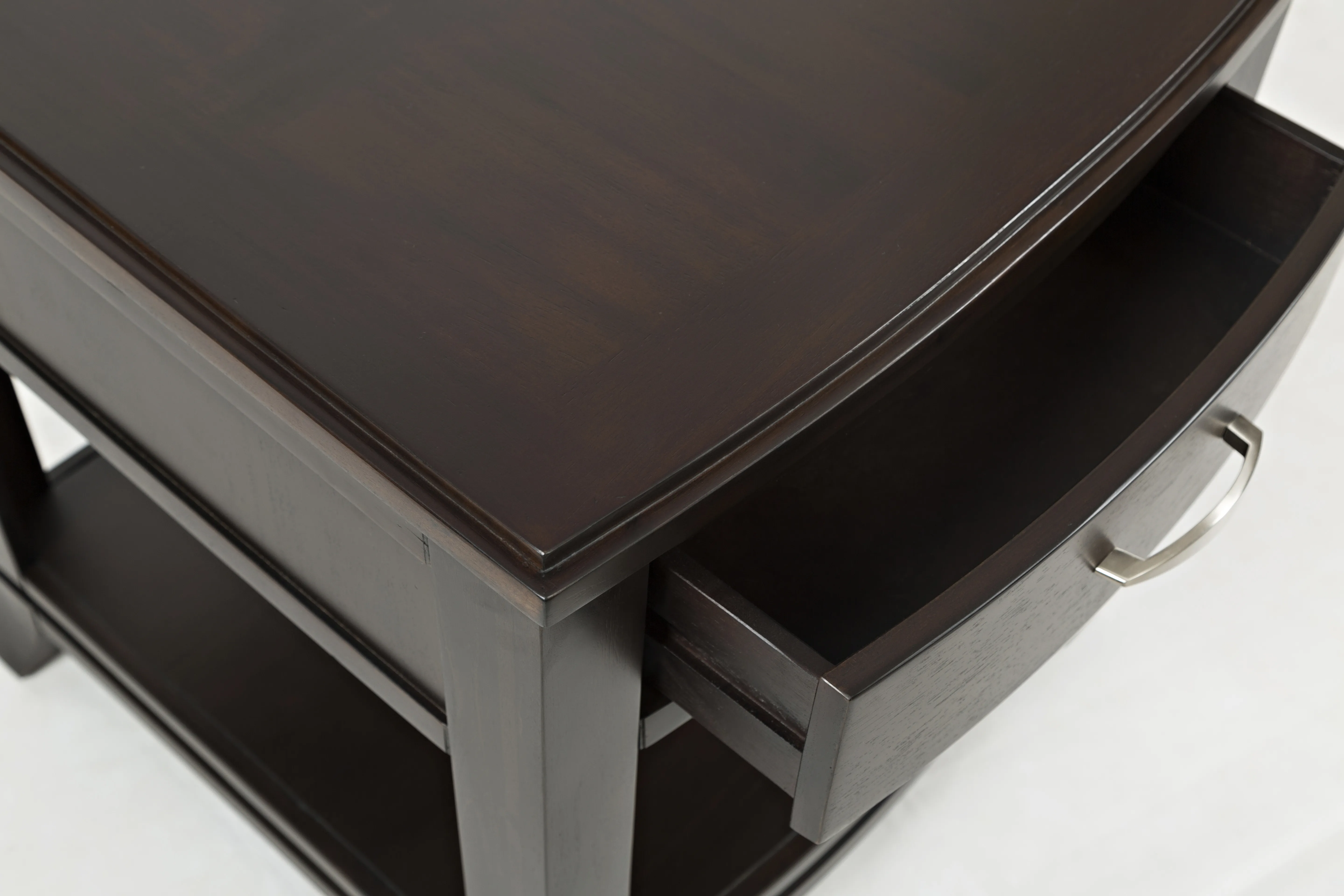 Easy curves and subtle style make Jofran's Downton occasional collection a natural fit for any decor. The tables feature sturdy construction and a rich finish with brushed nickel hardware. Finish your room with these great pieces to creating an inviting and posh space.