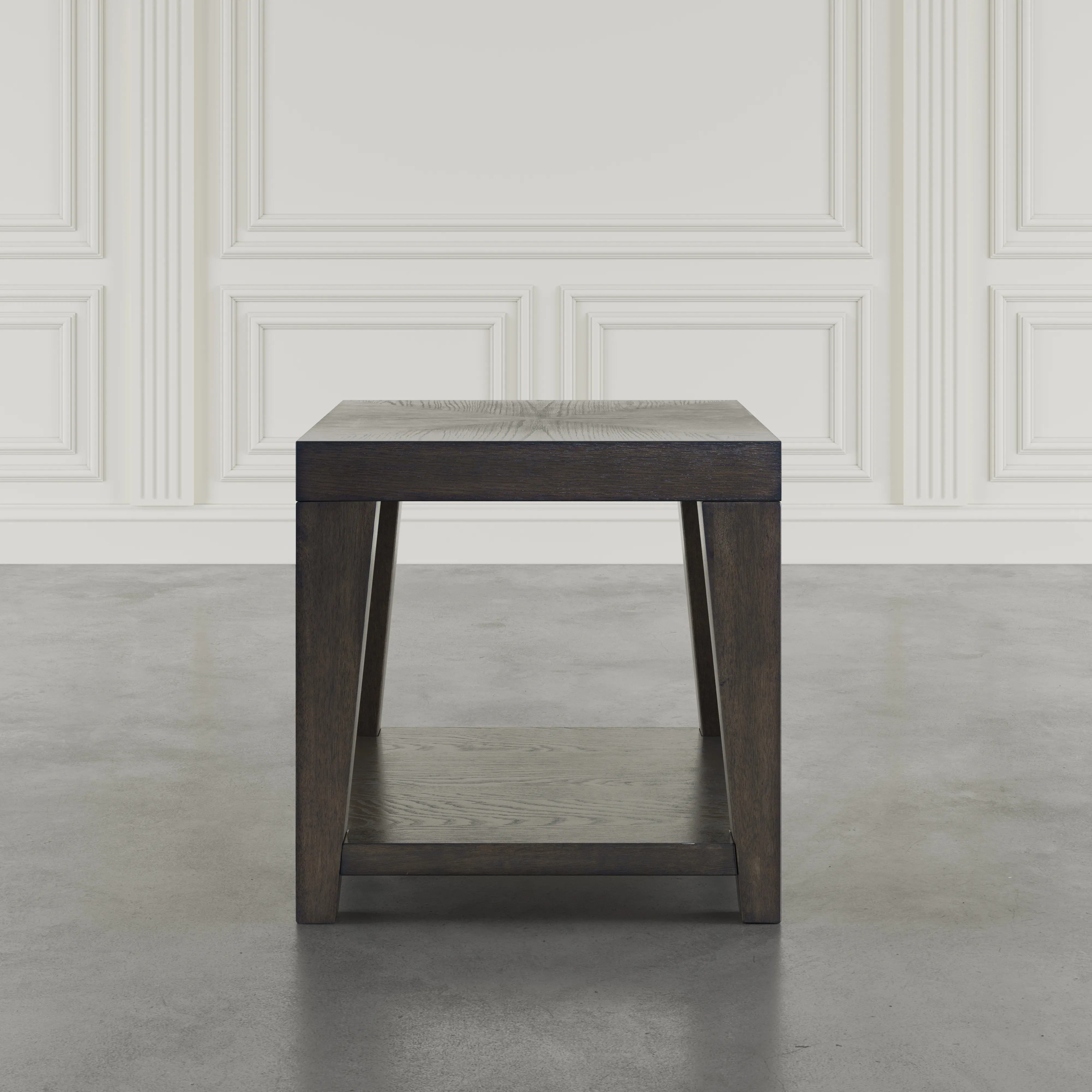 - -Spacious open shelf for storage and display -Compact design fits seamlessly into various spaces -Clean-lined silhouette enhances contemporary aesthetics -Engineered wood and veneer tabletop -Solid rubberwood legs for stability - -