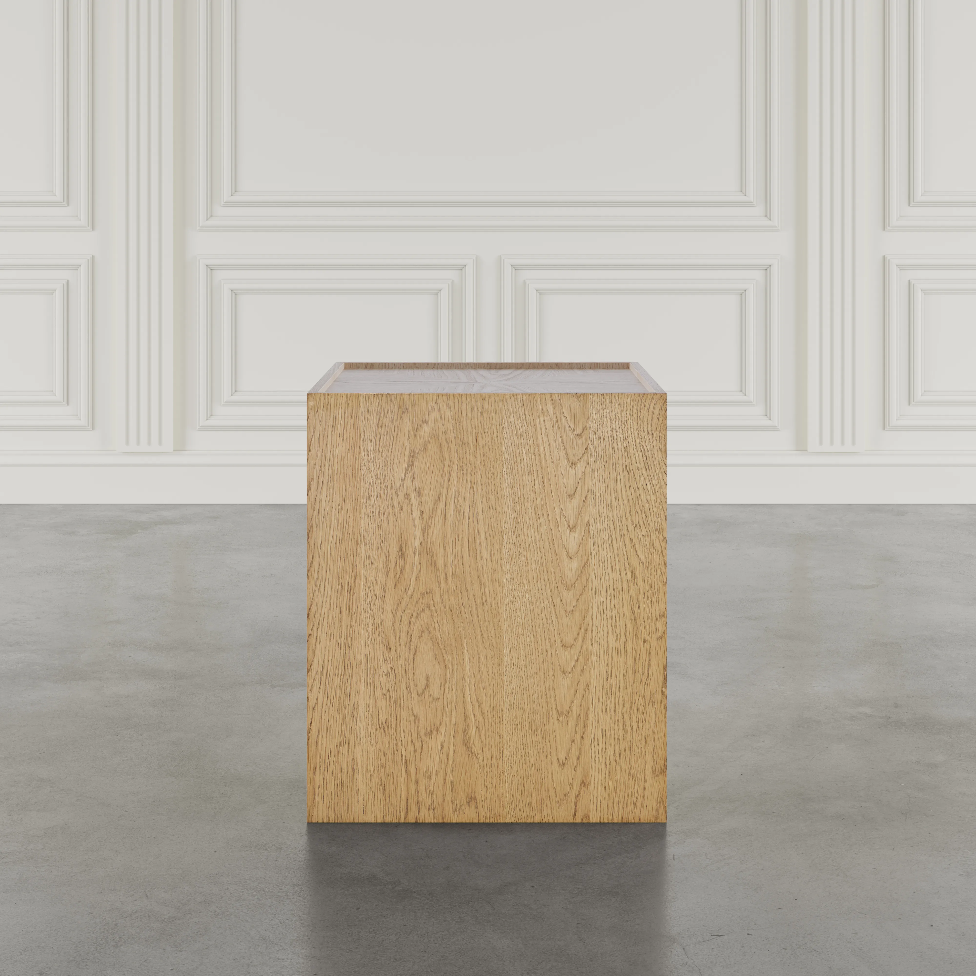 - -Block-style pedestal base for modern appeal -Compact size ideal for small spaces -Smooth top surface perfect for decor and lighting -Engineered wood