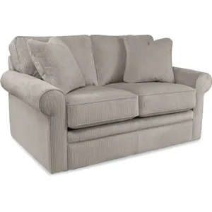 Put your comfort on cruise control with our Talladega reclining loveseat. A convenient middle console with hidden storage and two cup holders keeps essentials at your fingertips, while dual-sided reclining lets you shift into relaxation. Simply release the easy-action latch on the right or left outside arms to adjust the back and full chaise legrest, or recline without raising your feet. A streamlined design with sleek padded arms and exposed wings gives Talladega a modern look, while racing stripe topstitching on the lower back adds extra flair. Upgrade to Harmony Leather, featuring decorative heavy-gauge double-needle topstitching on the lower back, arm posts and wings for added distinction.