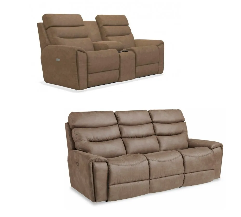 As the modern version of a billowy classic, the Soren Power Reclining Loveseat with Console not only provides maximum comfort, but also convenience. With just the right balance of softness and support, the full, foam-backed bucket chaise seats are spacious yet cozy, while the recliner and legrests offer a variety of positions. Simply use the side-mounted 2-button control panels to recline the seats and raise the legrests for perfectly customized comfort. Built-in USB ports power your phones or tablets. Between the seats, a handy center console provides extra armrest space, hidden storage and two cup holders. Make it yours with your choice of fabrics and available upgrades.