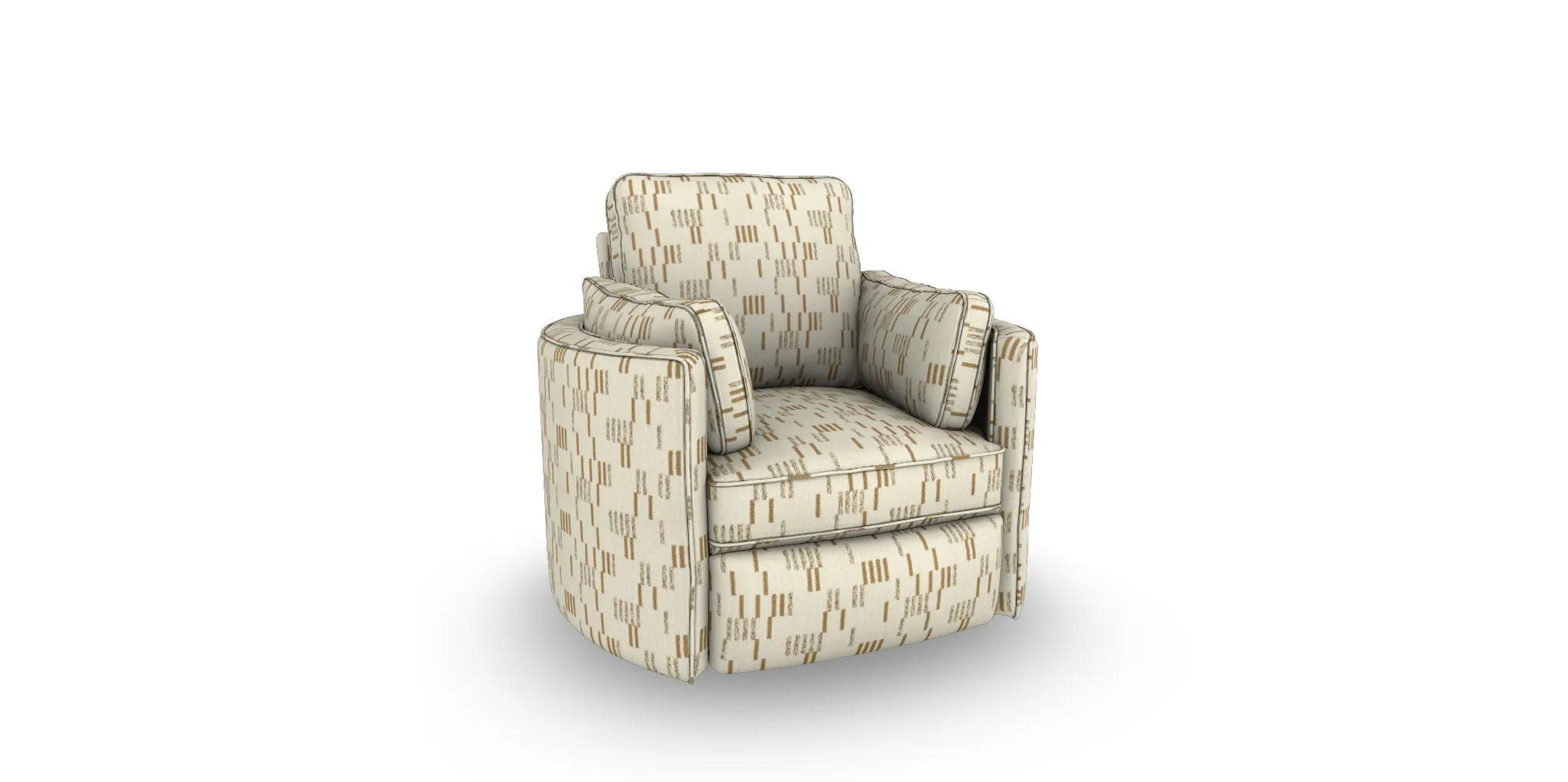 Introducing the epitome of relaxation: the Luana swivel recliner a modern design with sumptuous pillow cushions and a comforting, yet functional swivel action. Crafted for comfort and style, this chair seamlessly merges form and function. Immerse yourself in unparalleled coziness as the plush pillows envelop you, providing the perfect support for a blissful seating experience. The swivel feature adds a dynamic touch, allowing you to effortlessly turn in any direction, while the recliner offers full body support and comfort. With a sleek design that complements contemporary spaces, our swivel recliner is not just a piece of furniture; it's a sanctuary for serenity.