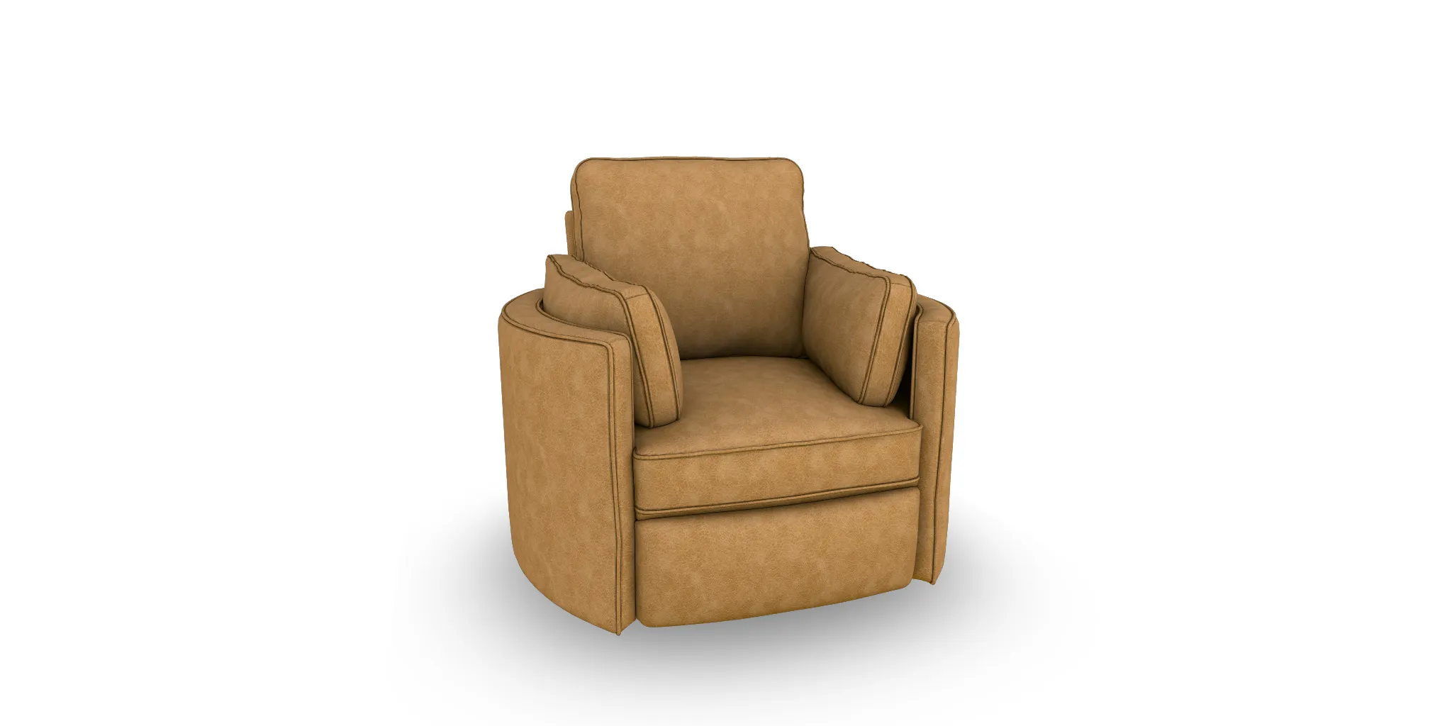 Introducing the epitome of relaxation: the Luana swivel recliner a modern design with sumptuous pillow cushions and a comforting, yet functional swivel action. Crafted for comfort and style, this chair seamlessly merges form and function. Immerse yourself in unparalleled coziness as the plush pillows envelop you, providing the perfect support for a blissful seating experience. The swivel feature adds a dynamic touch, allowing you to effortlessly turn in any direction, while the recliner offers full body support and comfort. With a sleek design that complements contemporary spaces, our swivel recliner is not just a piece of furniture; it's a sanctuary for serenity.
