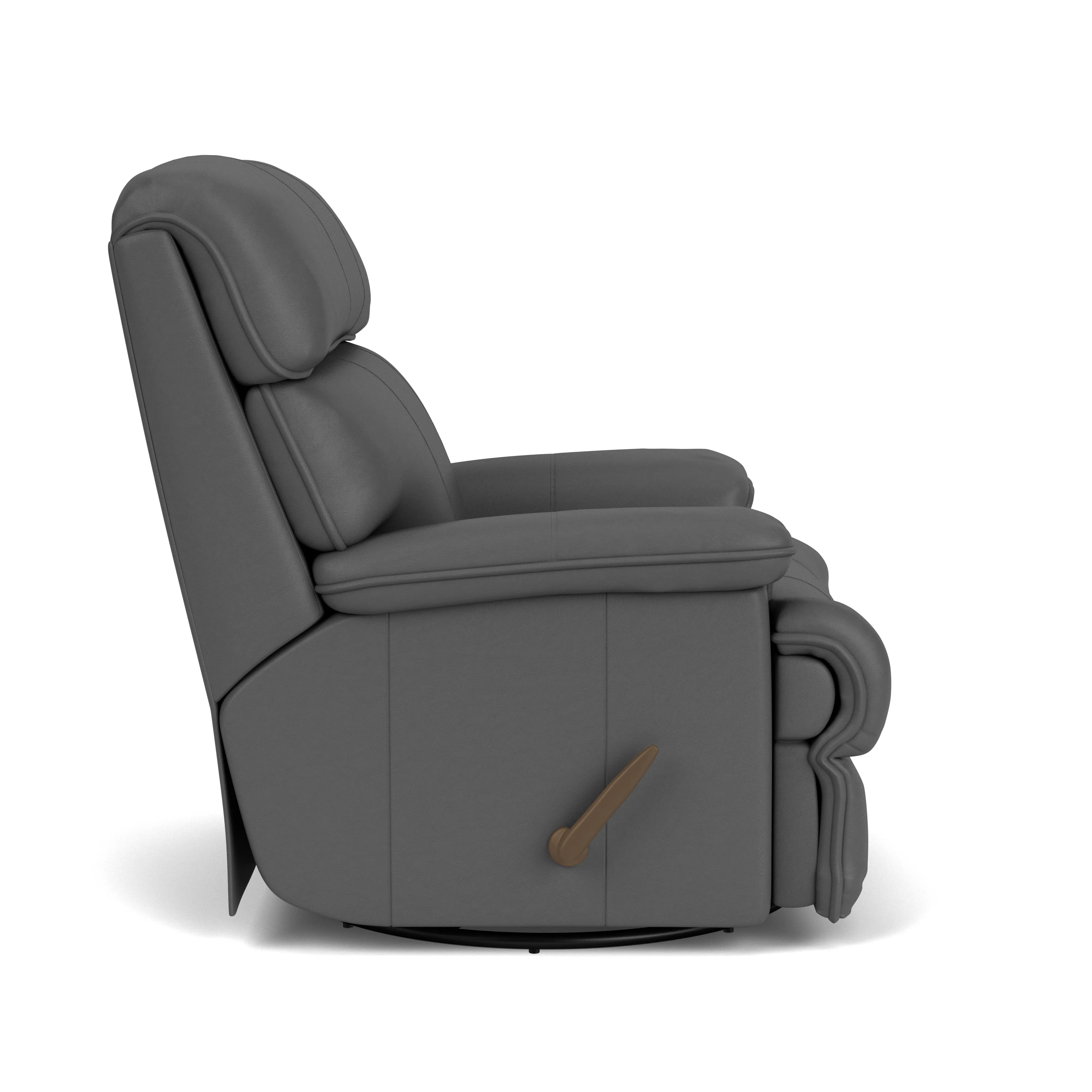 Geneva features a double bustle-back cushion with vertical stitching details and a comfortable fully padded footrest for reclining in comfort. The arms are generously padded for extra relaxation. Enjoy smoothly gliding back and forth or reclining from an upright to a fully reclined position.