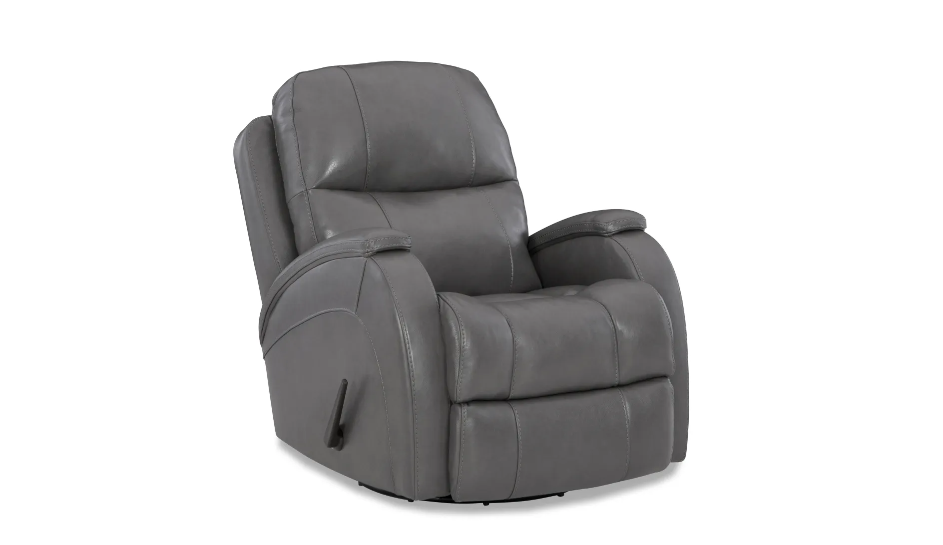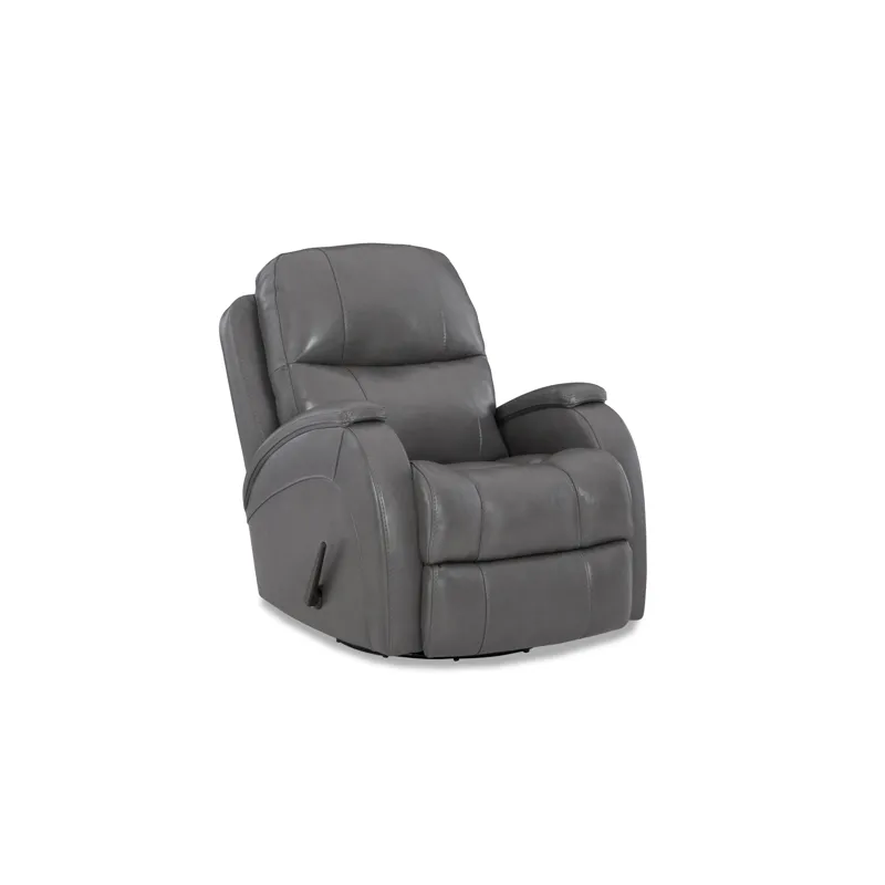 The 241 Phantom is a medium-scale glider recliner with a 360 degree swivel base. The chair features a subtle scoop seat, a solid foam track arm, and a pad-over chaise for extra leg support. The luxurious top-grain leather cover is easy to maintain.