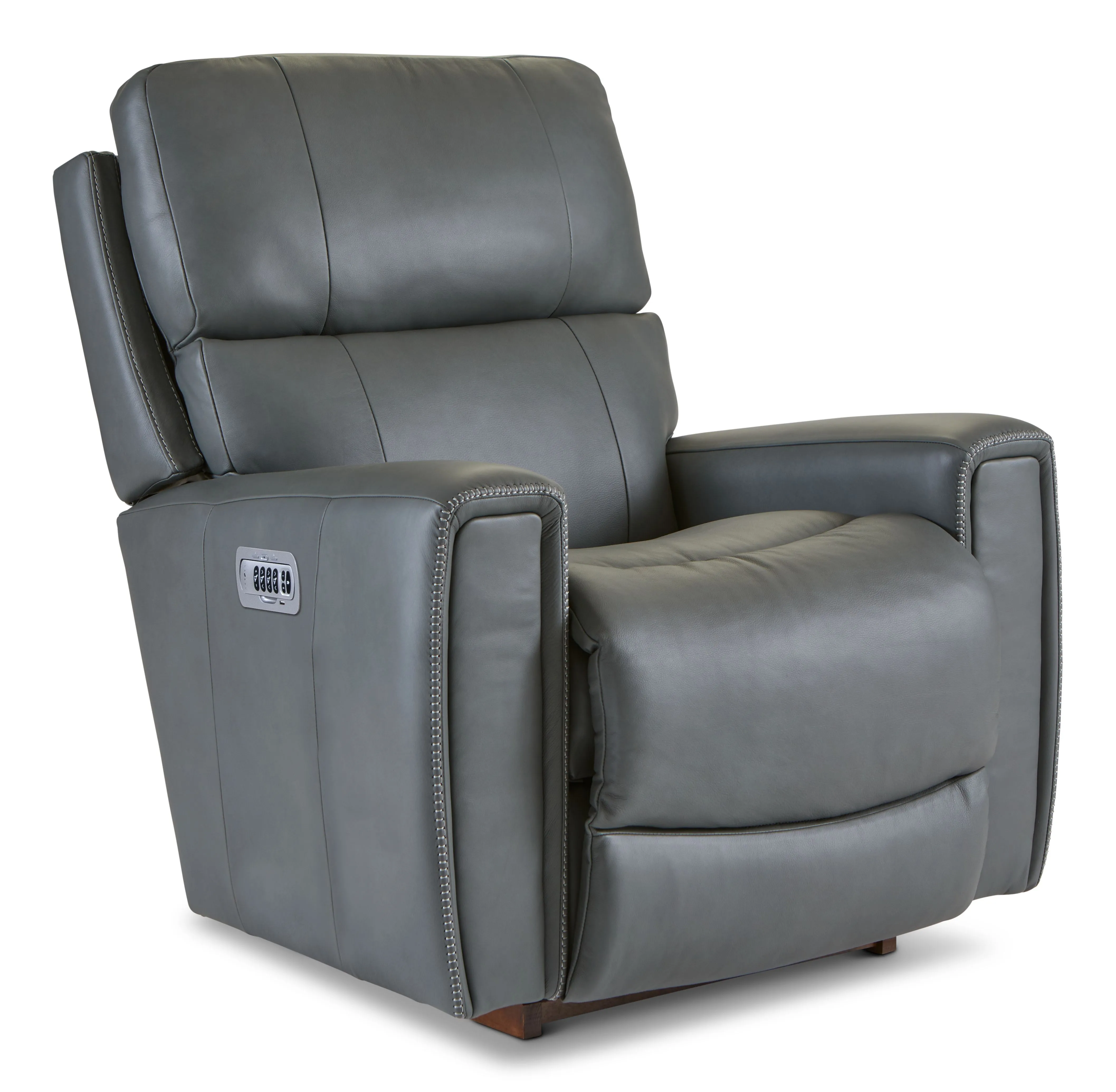 Style and head-to-toe comfort blend in the Apollo Power Rocking Recliner with Headrest and Lumbar. Sleek, padded track arms and a box-border back make a bold statement. Rock in the cozy bucket seat or adjust head, back and legs for peak contentment!
